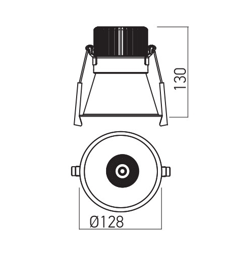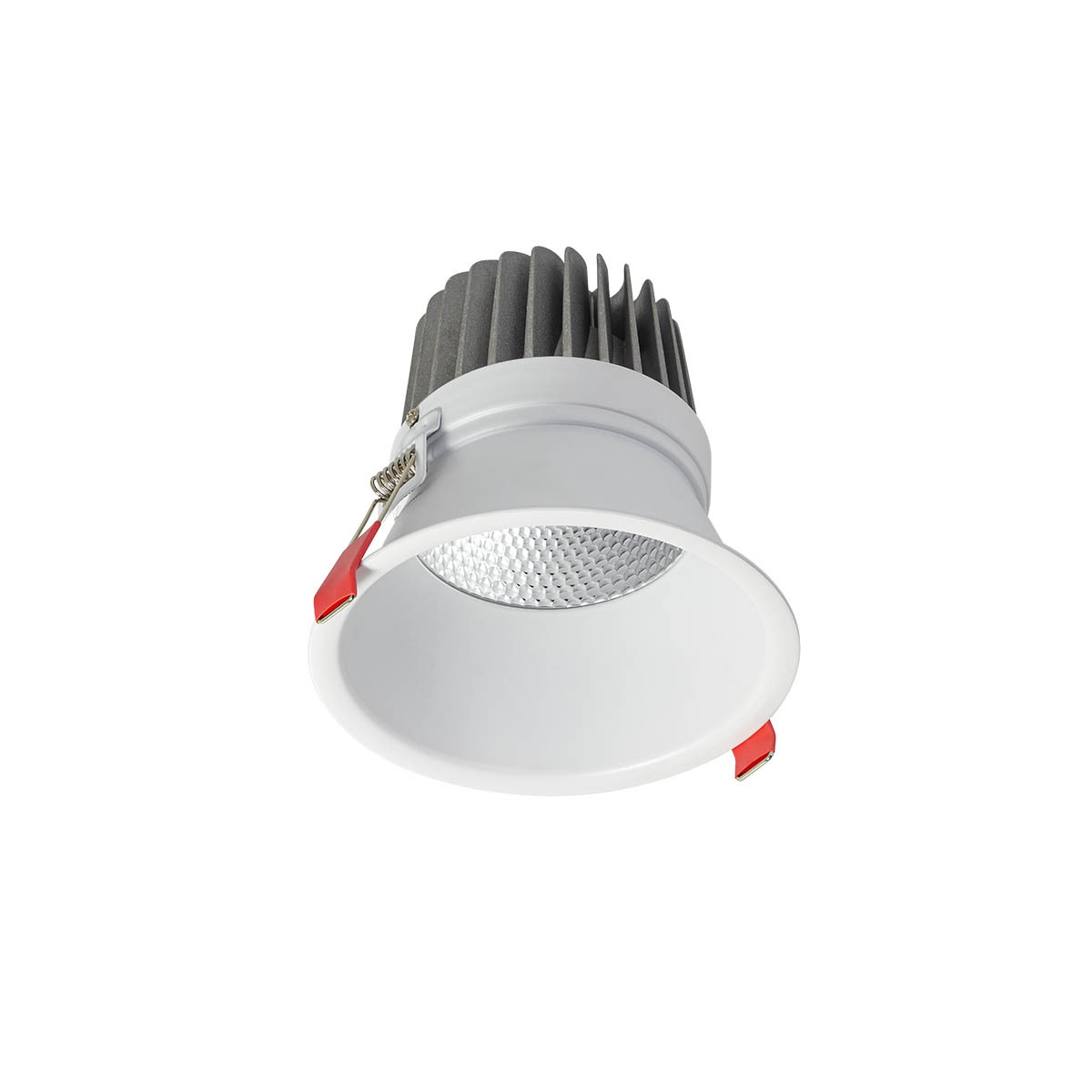 тяло от лят алуминий в бяло, рефлектор в сребрист цвят, дифузьор от фасетиран поликарбонат, без директни отблясъци, поради формата на рефлектора