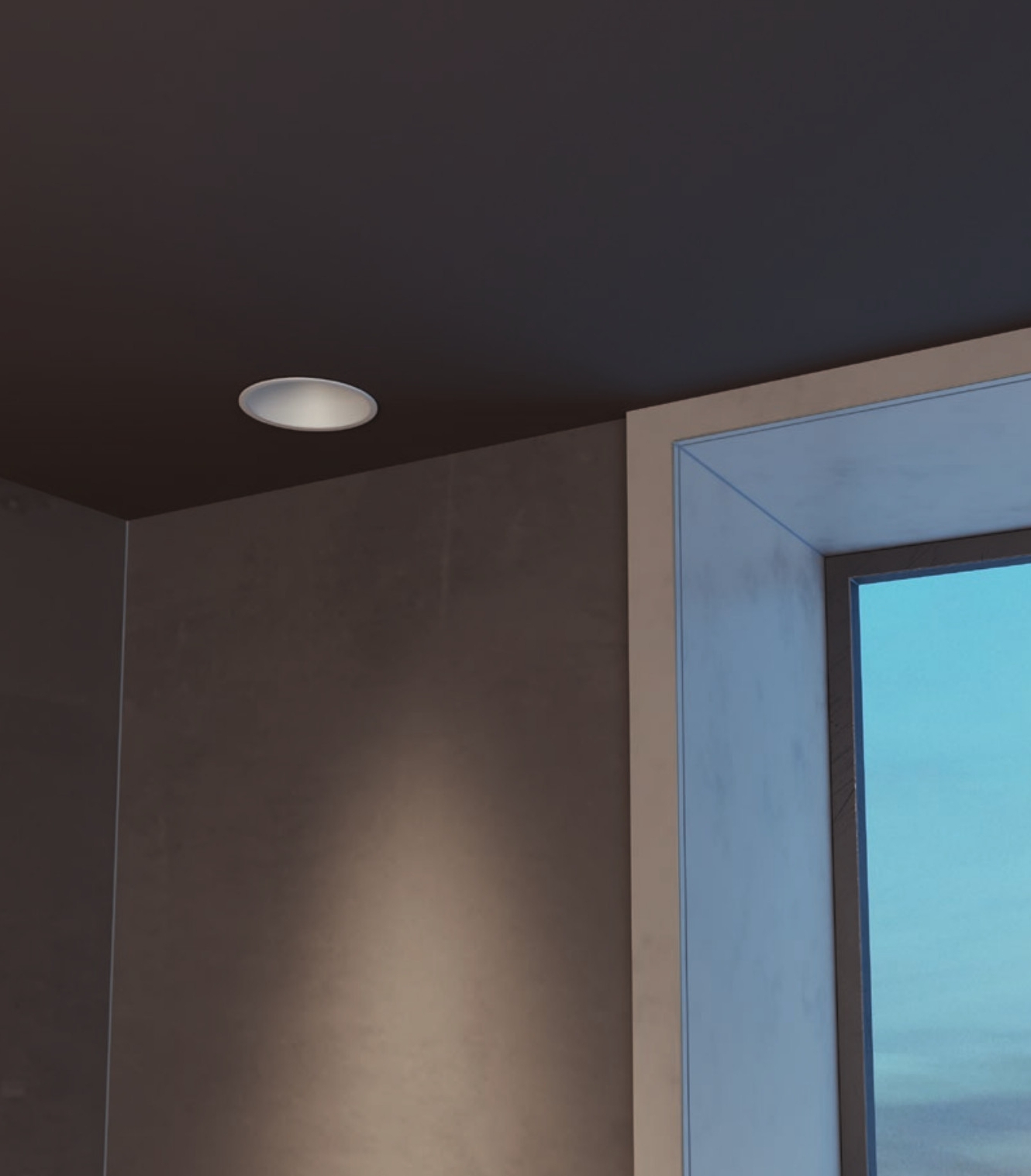 тяло от лят алуминий в бяло, рефлектор в сребрист цвят, дифузьор от фасетиран поликарбонат, без директни отблясъци, поради формата на рефлектора