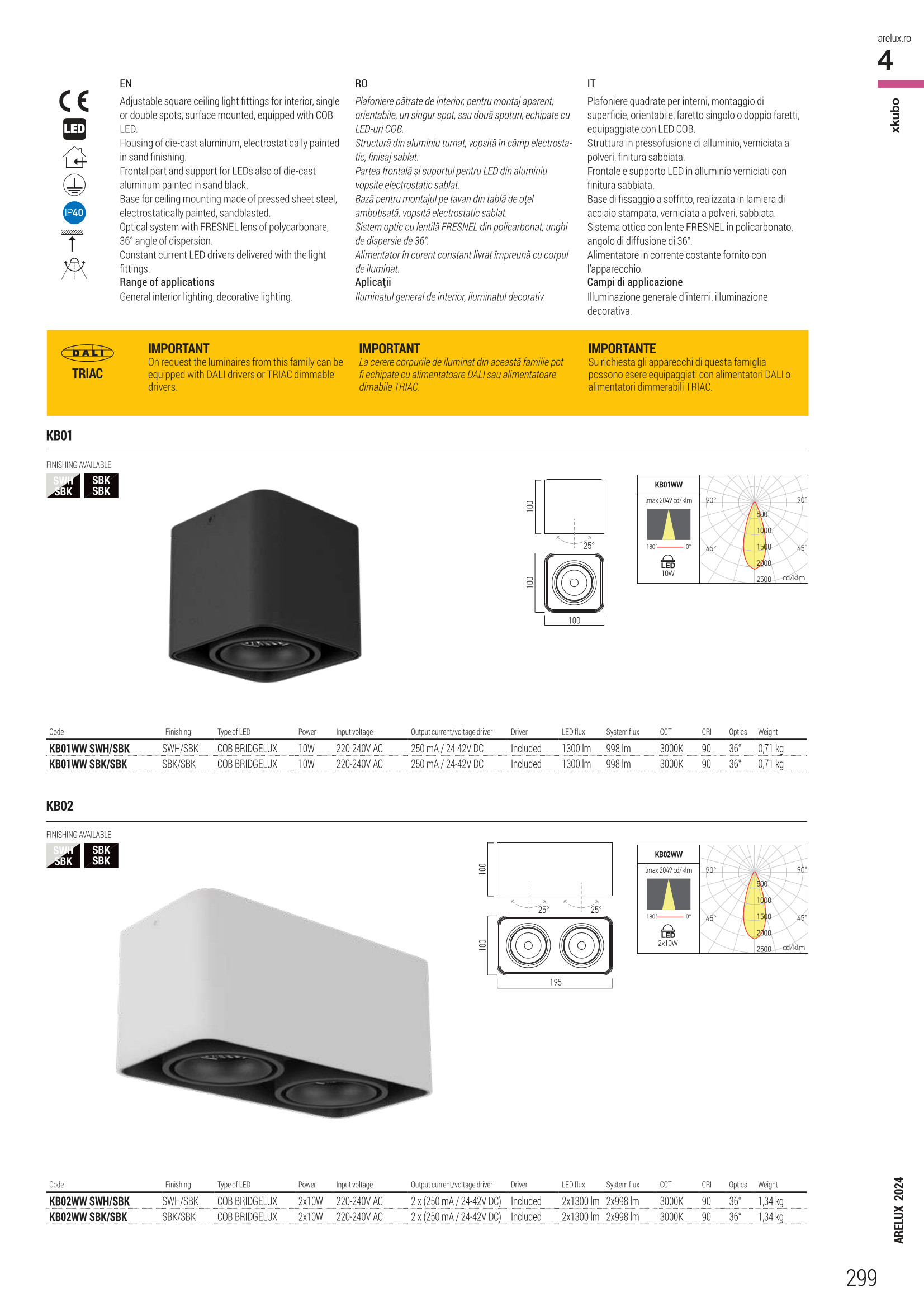 Лед луничка / луна KB02WW SBK/SBK ще осигури комфорт и естетика във всяко помещение, в което се постави. Цялостната визия и дизайн на led лампата и вложените в изработката й материали, като отлят алуминий в пясъчно черно, фронтална част в пясъчно черно, оптична леща FRESNEL от поликарбонат, дисперсия 36°, ще допринесат за един неповторим стил. Благодарение на дългогодишния опит в производството на лед осветление, качествените материали и строгия контрол на качеството на изработка на дизайнерската линия Redo Arelux на производителя Redo (Румъния), KB02WW SBK/SBK е на високо европейско ниво.
