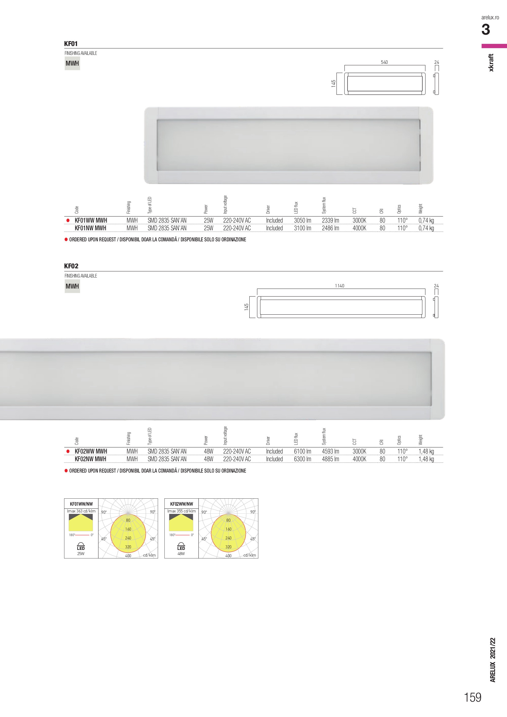 Лед плафон KF02NW MWH ще осигури комфорт и естетика във всяко помещение, в което се постави. Цялостната визия и дизайн на led лампата и вложените в изработката й материали, като корпус от алуминиева плоскост с електростатично нанесено покритие в цвят бял мат с крайни капачки от поликарбонат, фиксираща система от стомана в бяло, дифузьор от опалово бял PMMA, ще допринесат за един неповторим стил. Благодарение на дългогодишния опит в производството на лед осветление, качествените материали и строгия контрол на качеството на изработка на дизайнерската линия Redo Arelux на производителя Redo (Румъния), KF02NW MWH е на високо европейско ниво.