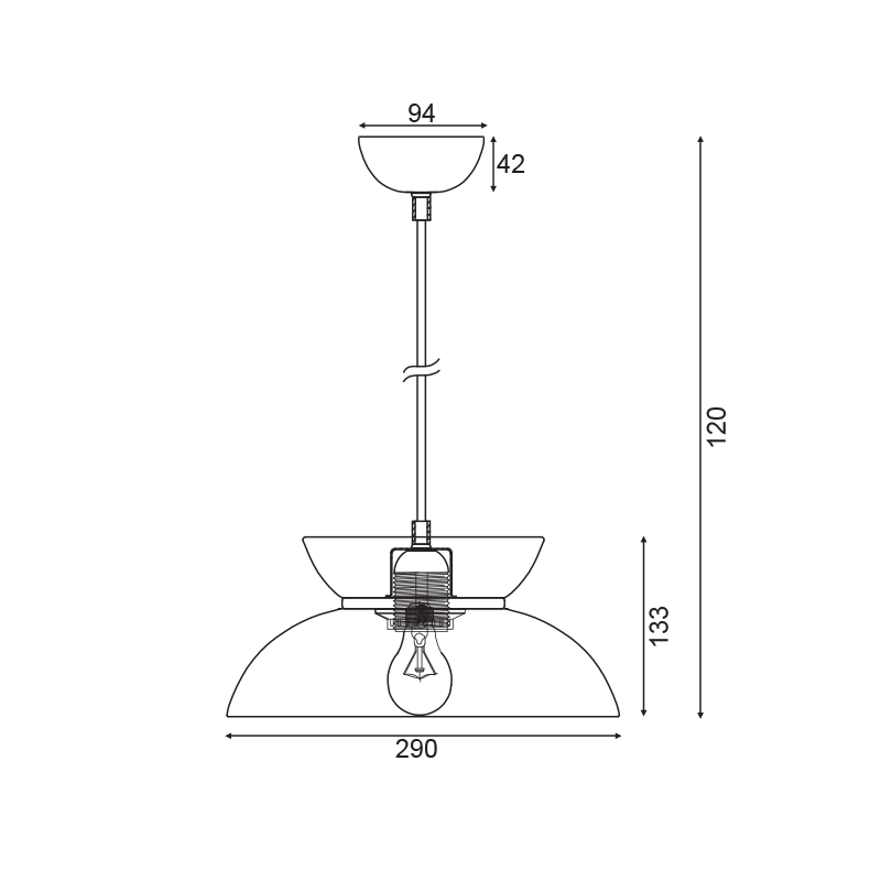 Ел. мощност 1 х 60 W Размери Ф29см x 13.3см x 120см Производител ACA-Lighting, Гърция