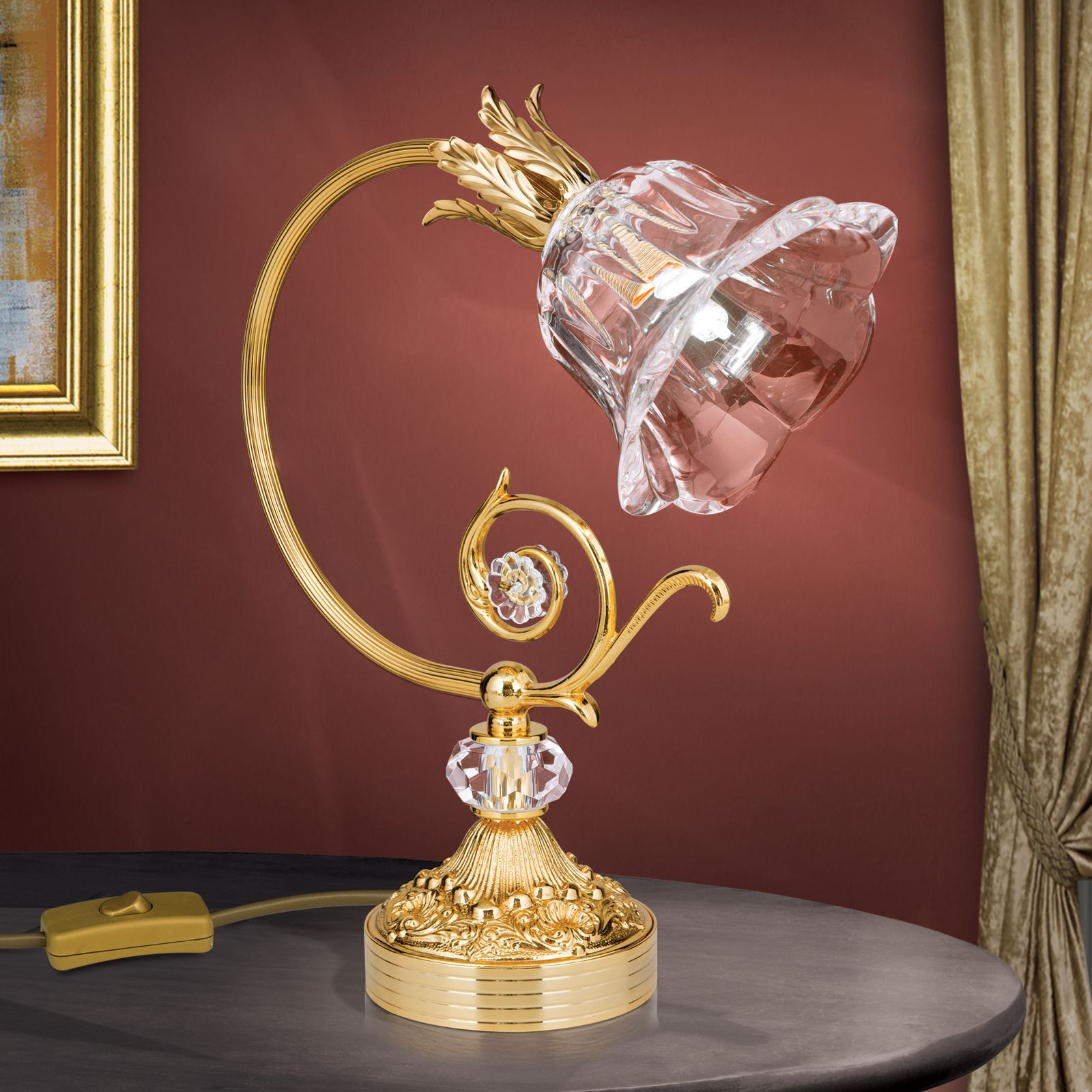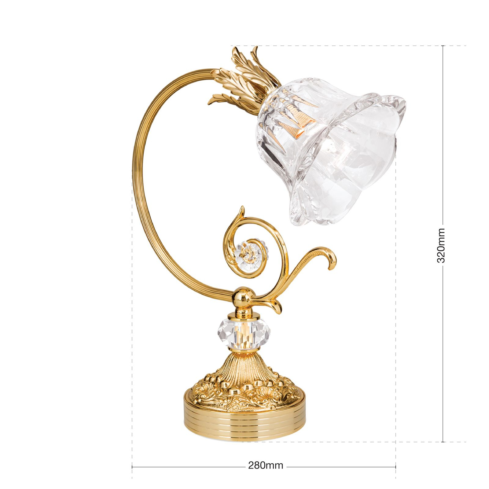 Магазини за за осветителни тела ОРИОН представят осветителното тяло LA 4-1099/1 gold/479 Schliff, което представлява настолна лампа, съдадено в класически стил. Като представител на категорията това осветително тяло е подходящо за различни помещения и пространства във Вашия дом или офис, като препоръчваме използването му, например за всекидневна / хол, спалня, трапезария, офис.