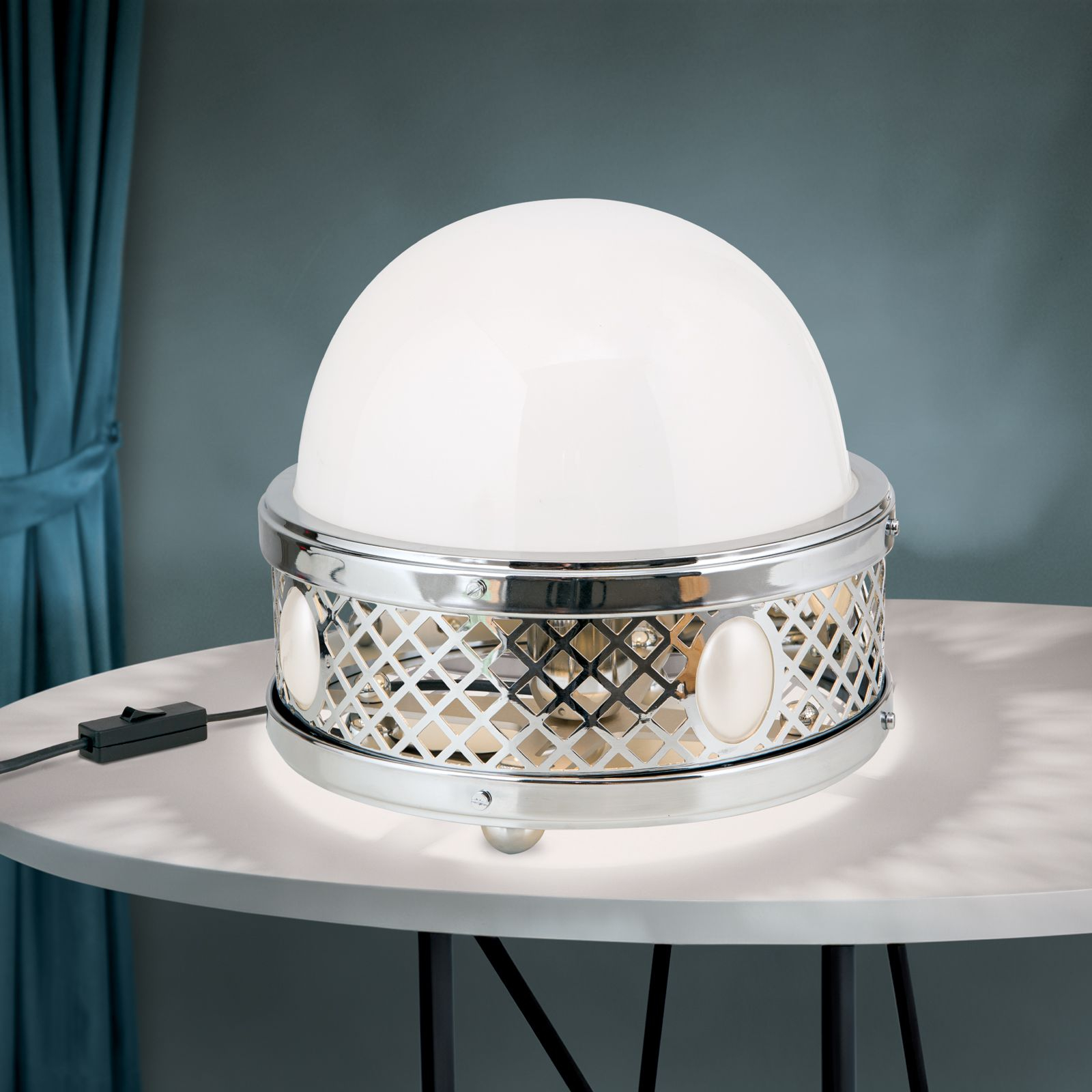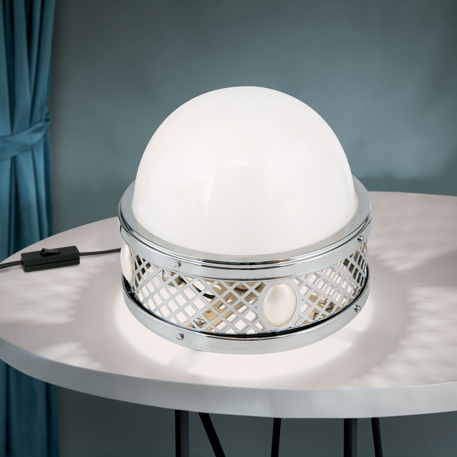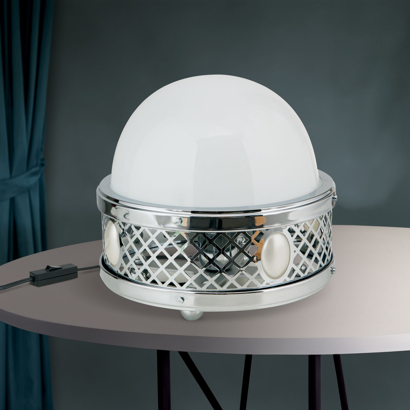 Осветителното тяло LA 4-1125/1/250 nickel/480 opal-glanzend представлява настолна лампа в съвременен стил. LA 4-1125/1/250 nickel/480 opal-glanzend е от категорията осветителни тела и е подходящо за осветяване на различни помещения и пространства като: всекидневна / хол, спалня, трапезария, офис.