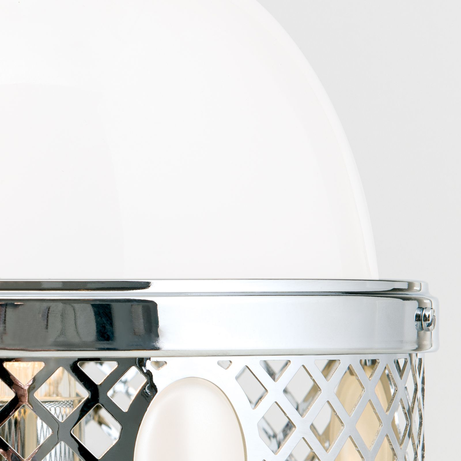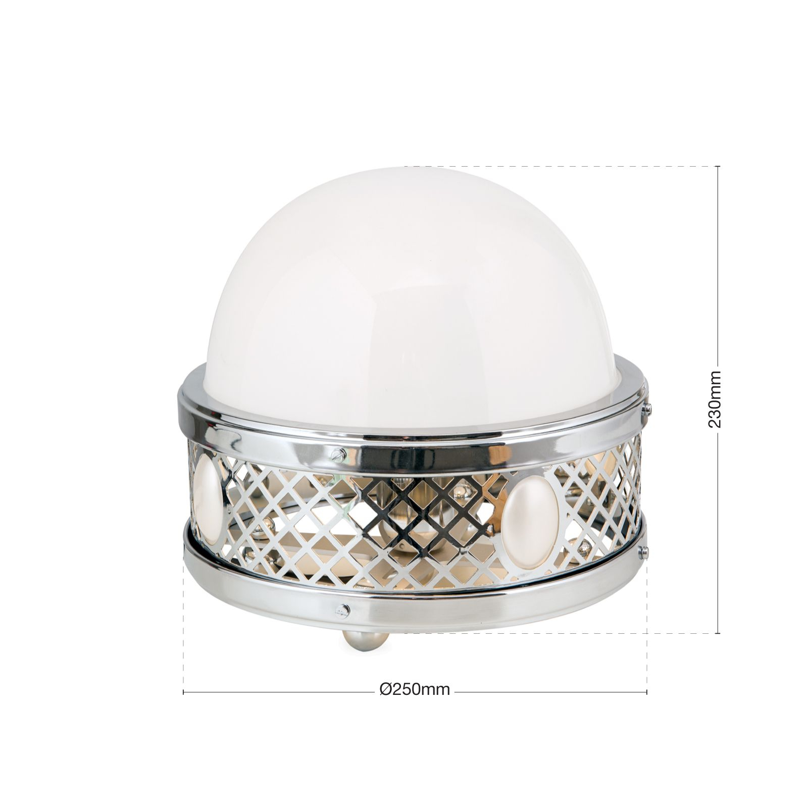 масивен месинг с покритие от блестящ никел, стъкло в цвят лъскав бял опал