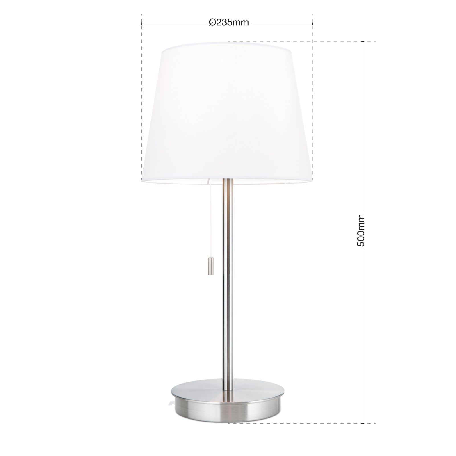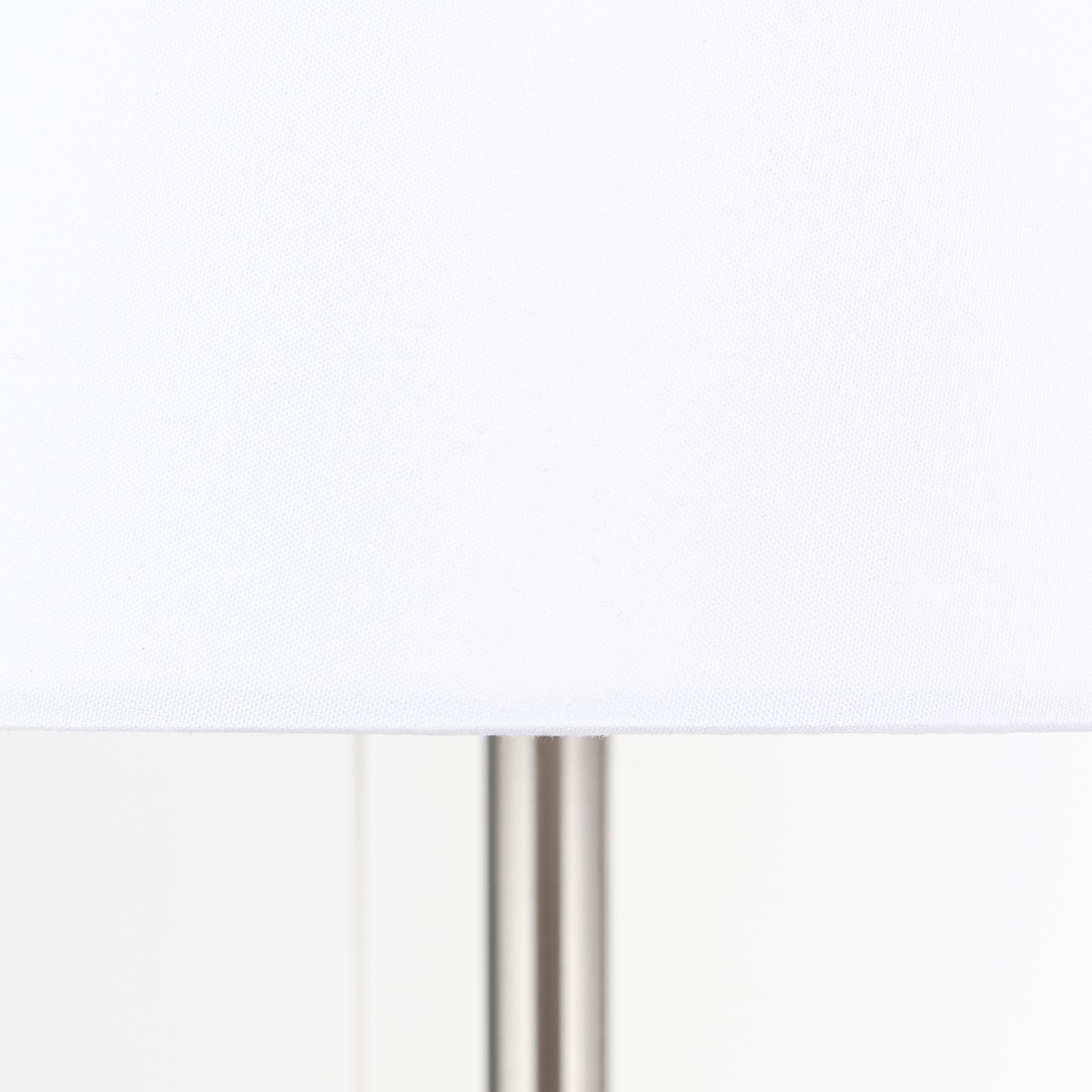 стомана в цвят хром сатен, абажур от текстил в бяло, USB порт (DC 5V, 2A), превключвател - въженце