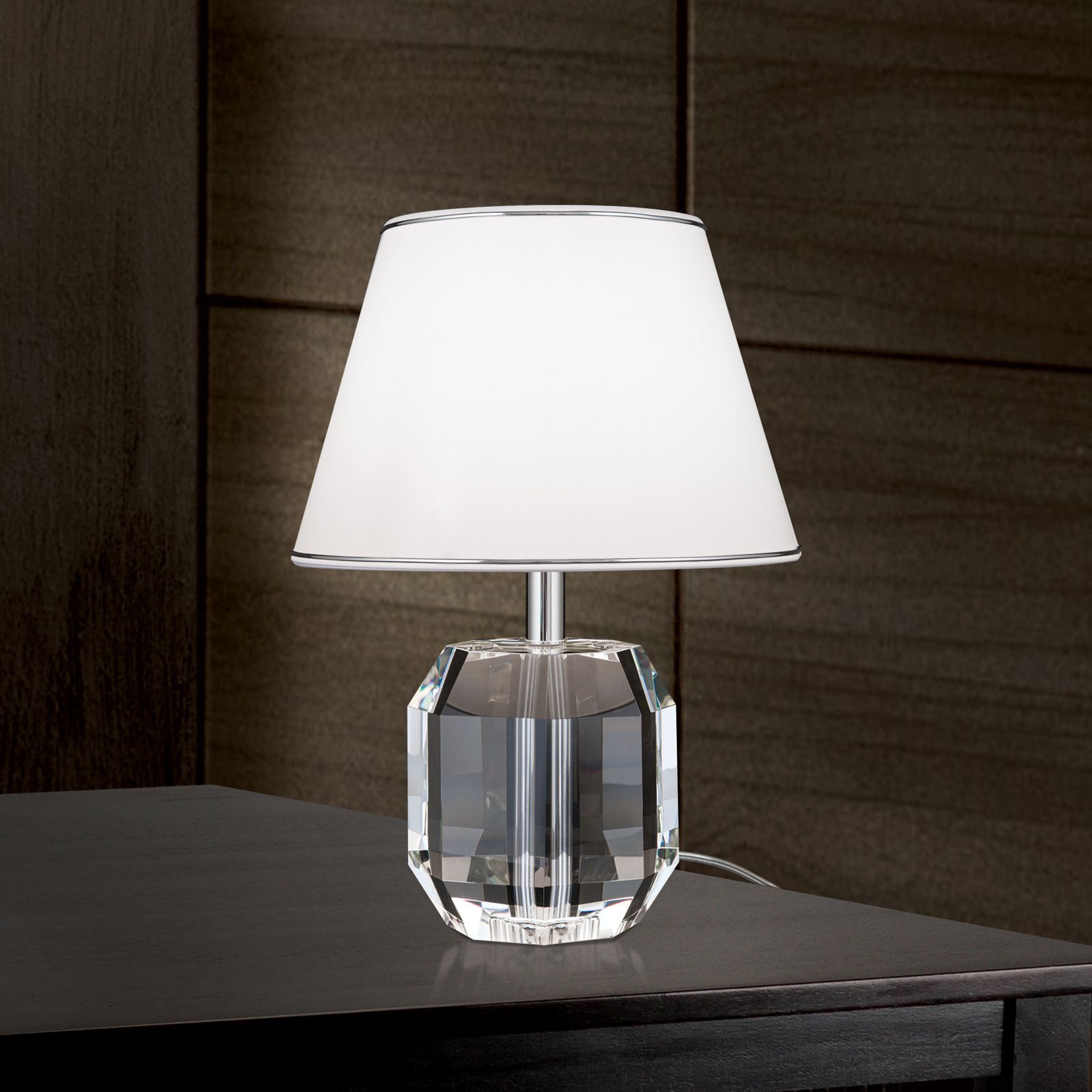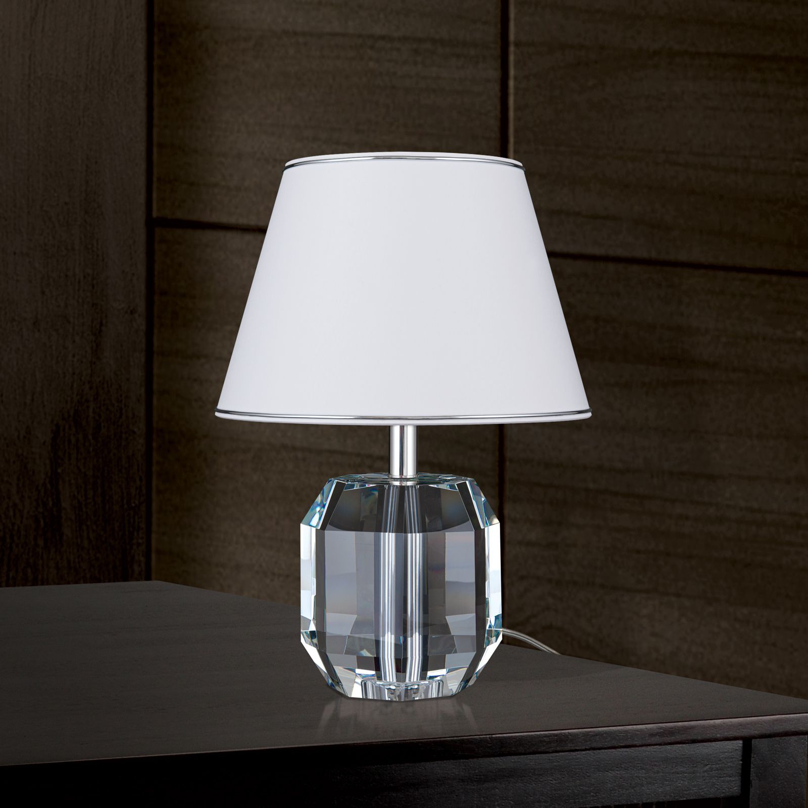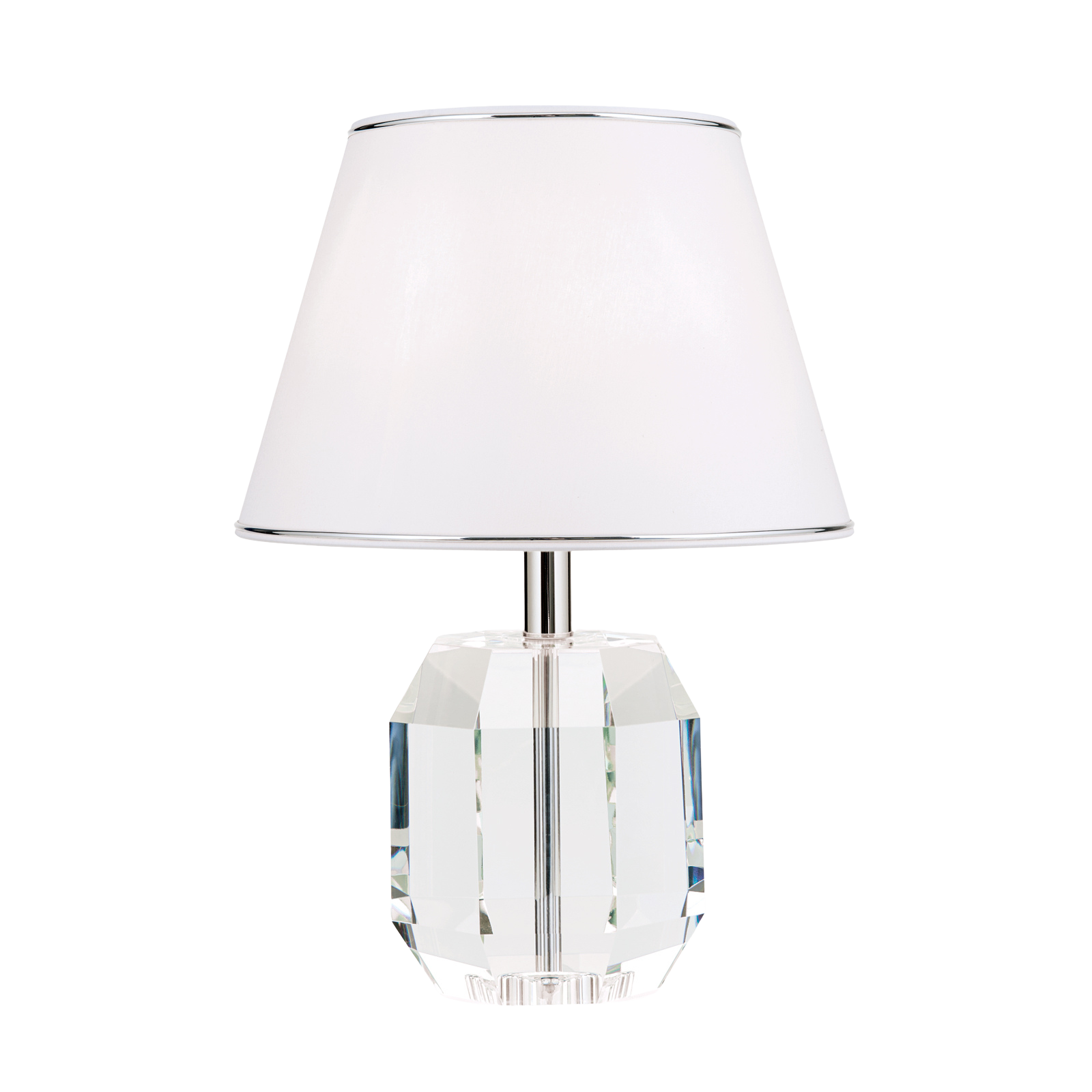 кристално стъкло К9, абажур от текстил в бял цвят със сребристи ивици, метал в цвят сребро