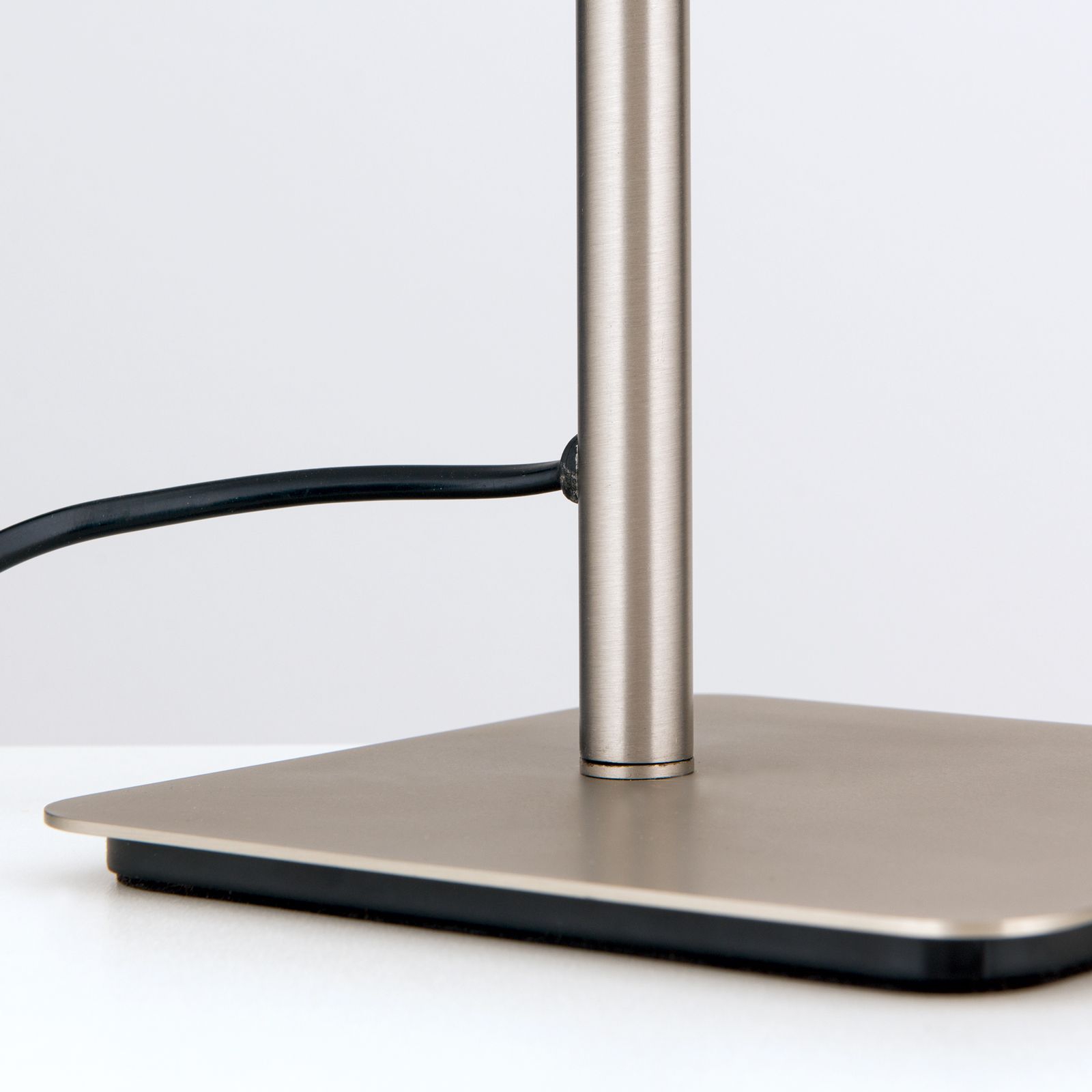 Осветителното тяло LA 4-1209/1 satin (1xE27) представлява настолна лампа в съвременен стил. LA 4-1209/1 satin (1xE27) е от категорията осветителни тела и е подходящо за осветяване на различни помещения и пространства като: всекидневна / хол, спалня, трапезария, офис.