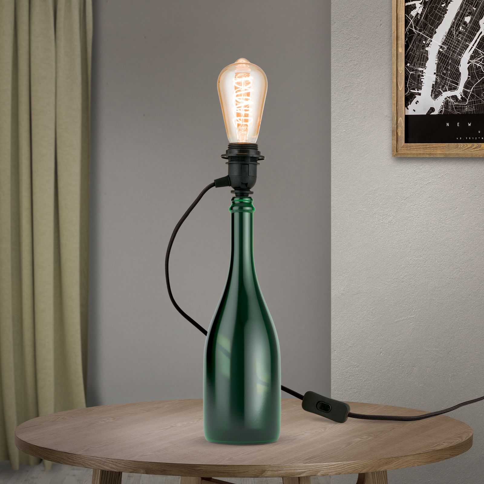захранващ кабел от полимер с щепсел и ключ в черен цвят с дължина 2m, държач за лампа от поликарбонат в черно, за бутилка или друг съд с ширина на гърлото от 18 до 25mm (бутилката, лампата и абажура не са включени в комплекта)