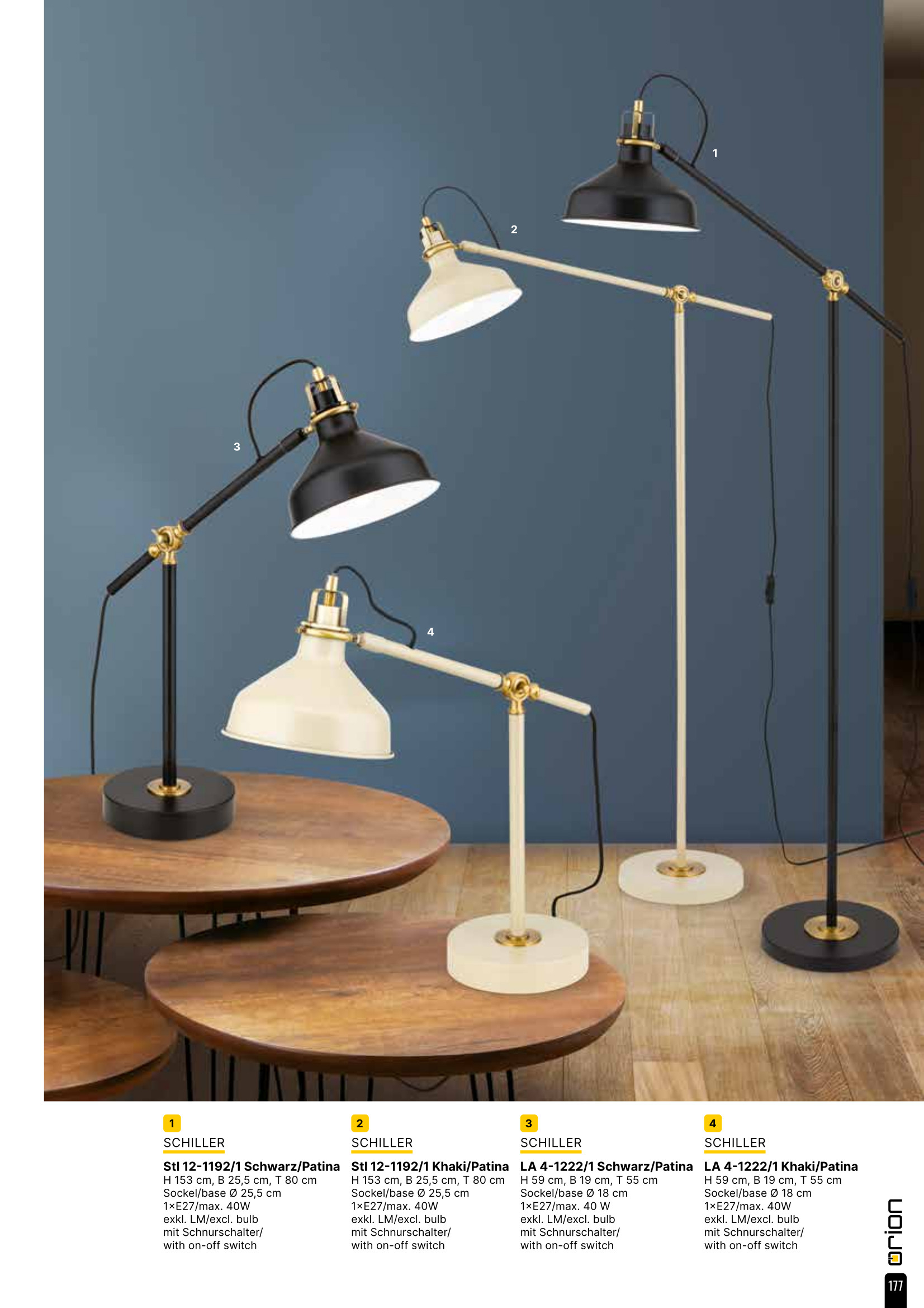Магазини за за осветителни тела ОРИОН представят осветителното тяло LA 4-1222/1 khaki/patina (1xE27), което представлява настолна лампа, съдадено в съвременен стил. Като представител на категорията това осветително тяло е подходящо за различни помещения и пространства във Вашия дом или офис, като препоръчваме използването му, например за всекидневна / хол, спалня, трапезария, офис.