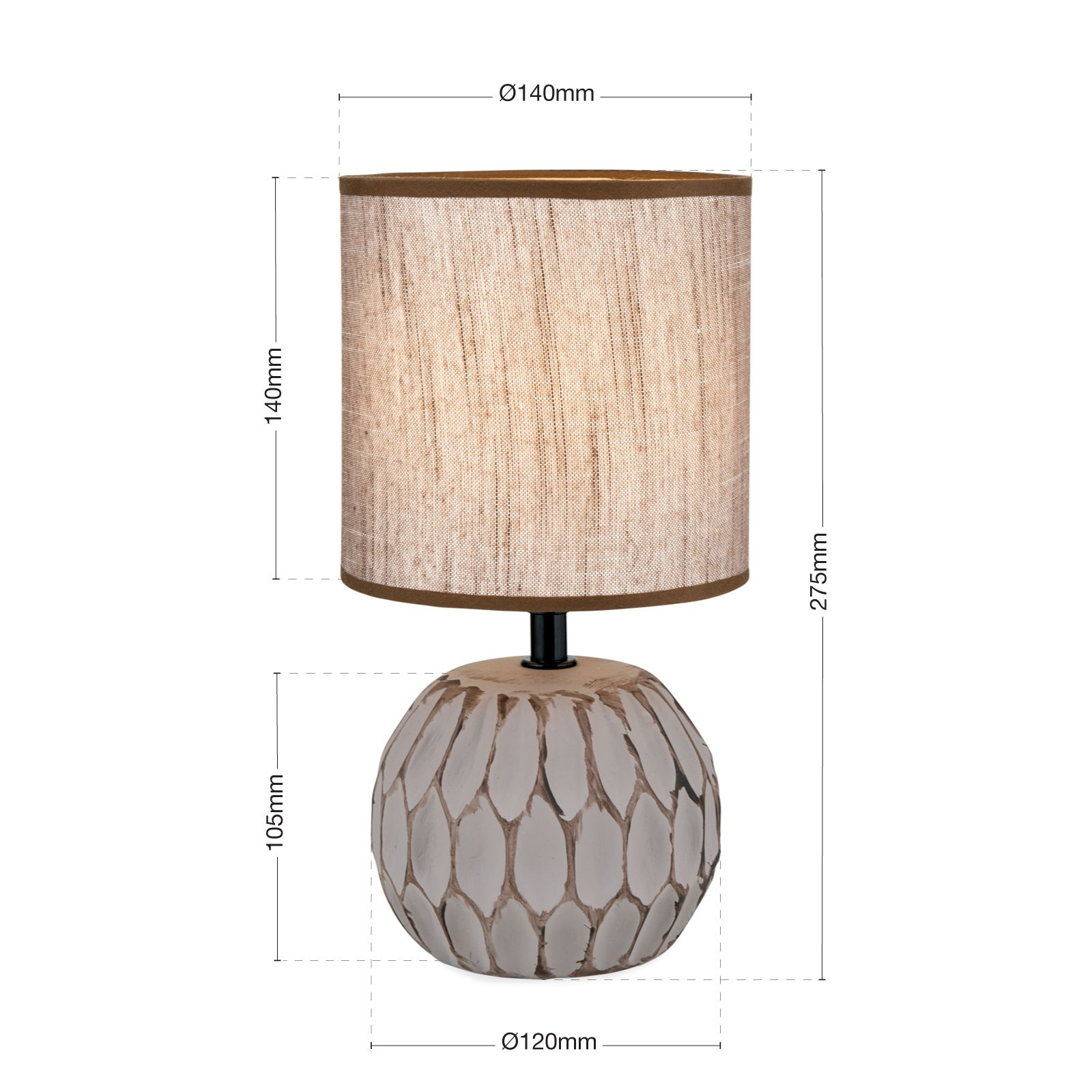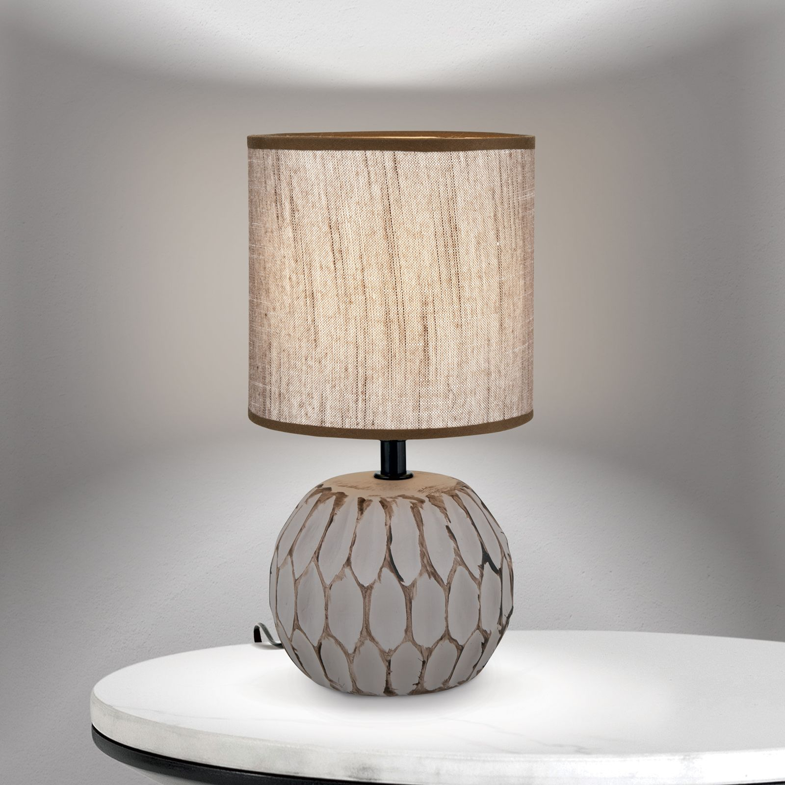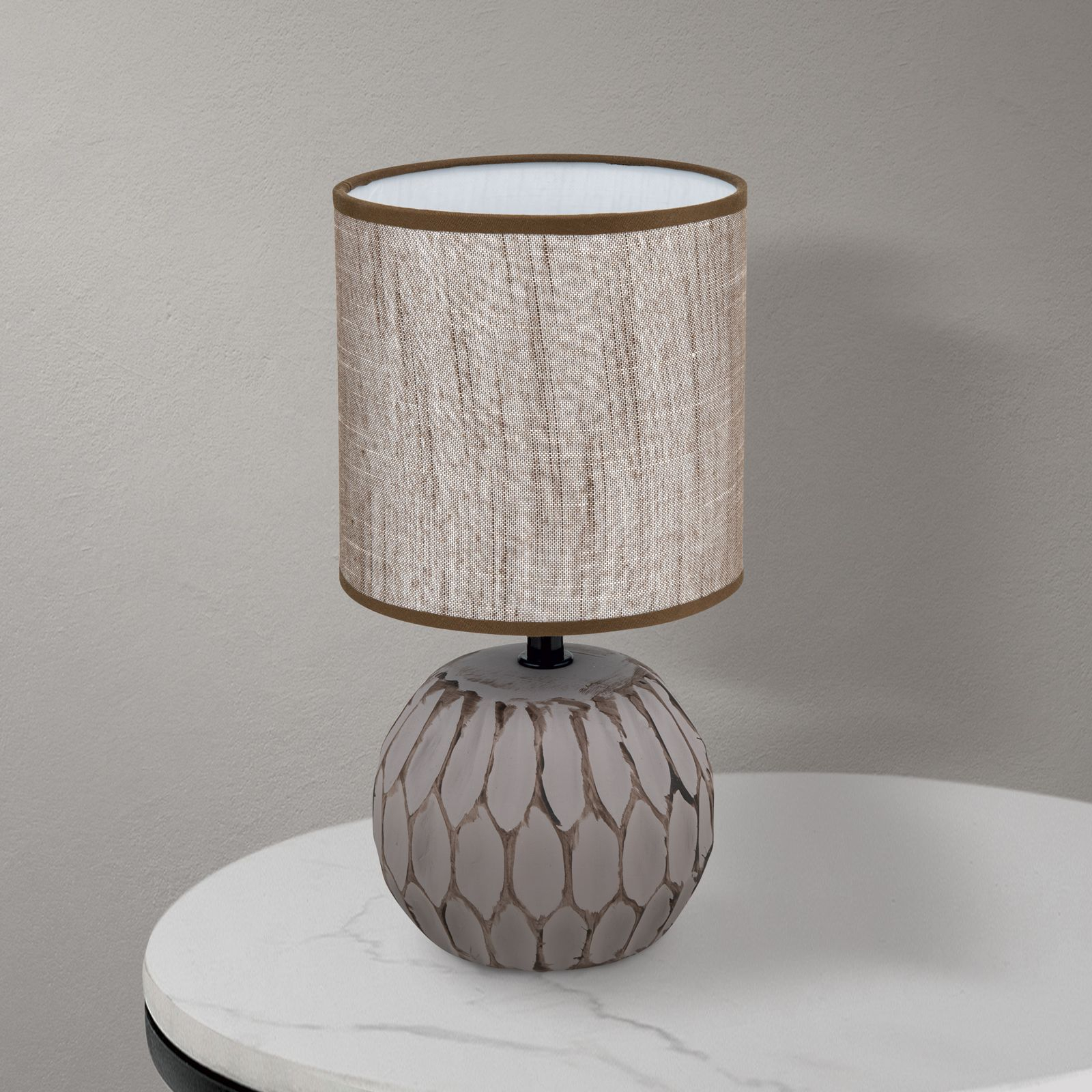 керамика в кафяво, абажур от текстил в кафяво, превключвател ON/OFF на кабела