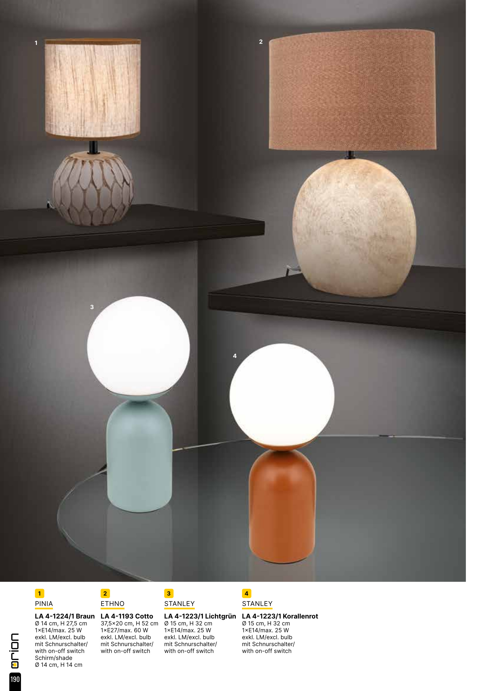 Стилът и естетиката на интериора ще се обогатят благодарение, както на цялостната визия, стил и дизайн на осветителното тяло, така и на вложените от производителя в изработката на LA 4-1224/1 braun (1xE14), качествени материали, като: керамика в кафяво, абажур от текстил в кафяво, превключвател ON/OFF на кабела.