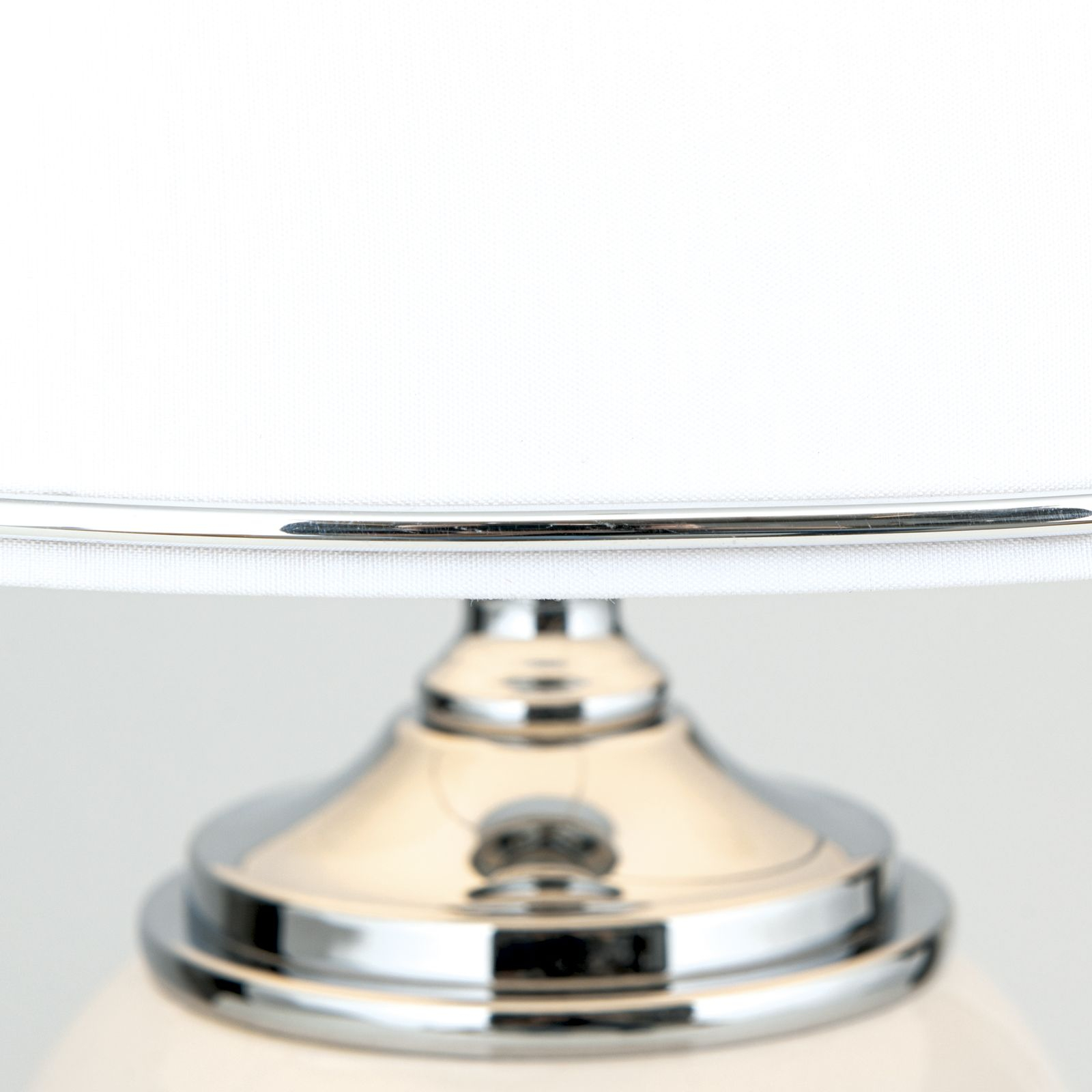 Магазини за за осветителни тела ОРИОН представят осветителното тяло LA 4-1229 chrom (1xE27), което представлява настолна лампа, съдадено в съвременен стил. Като представител на категорията това осветително тяло е подходящо за различни помещения и пространства във Вашия дом или офис, като препоръчваме използването му, например за всекидневна / хол, спалня, трапезария, офис.