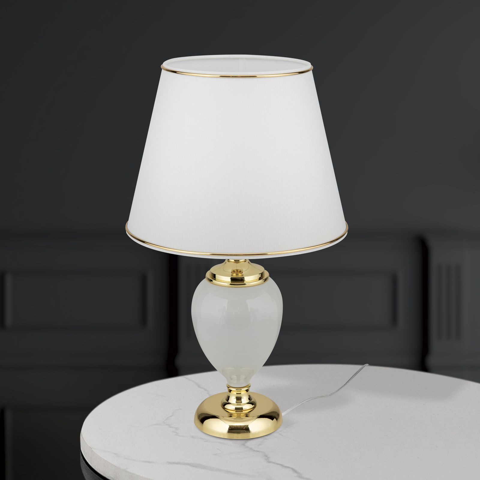Стилът и естетиката на интериора ще се обогатят благодарение, както на цялостната визия, стил и дизайн на осветителното тяло, така и на вложените от производителя в изработката на LA 4-1229 gold (1xE27), качествени материали, като: метал в цвят злато, керамика в цвят блестящо бяло, текстил в бяло, превключвател ON/OFF на кабела.