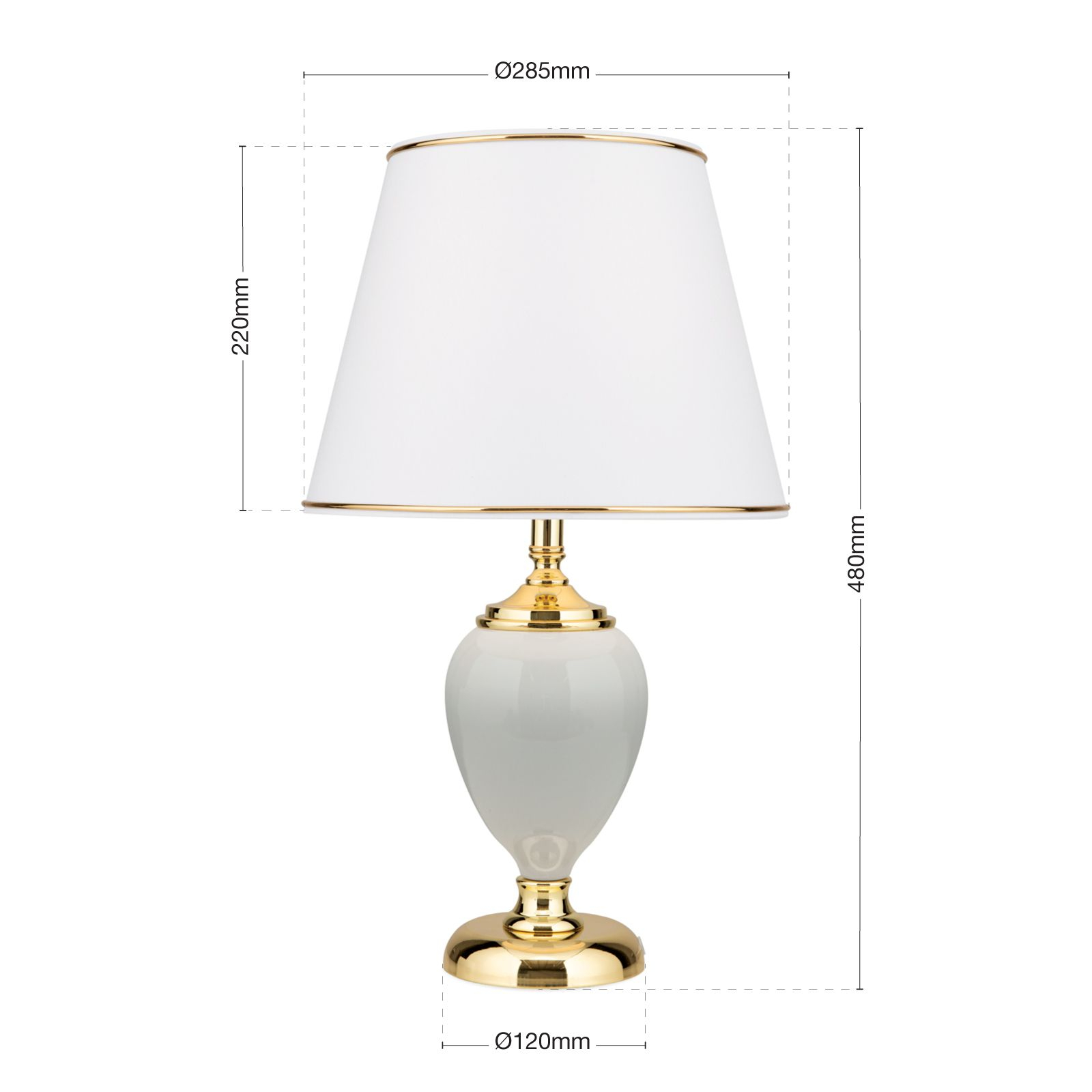 Магазини за за осветителни тела ОРИОН представят осветителното тяло LA 4-1229 gold (1xE27), което представлява настолна лампа, съдадено в съвременен стил. Като представител на категорията това осветително тяло е подходящо за различни помещения и пространства във Вашия дом или офис, като препоръчваме използването му, например за всекидневна / хол, спалня, трапезария, офис.