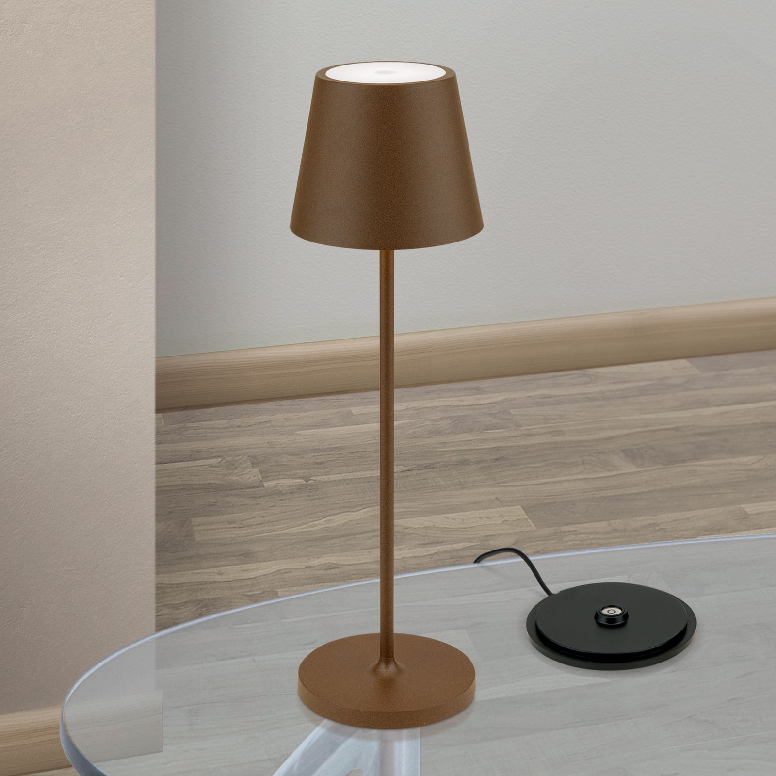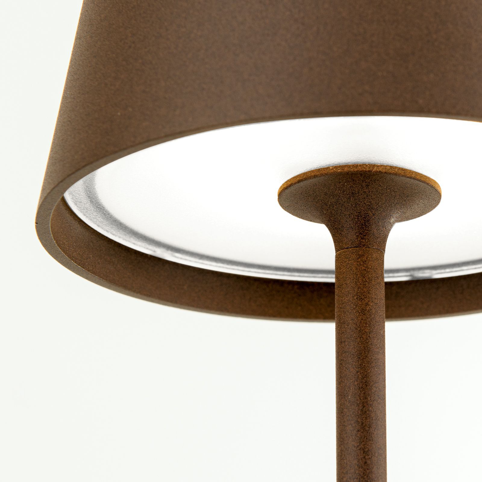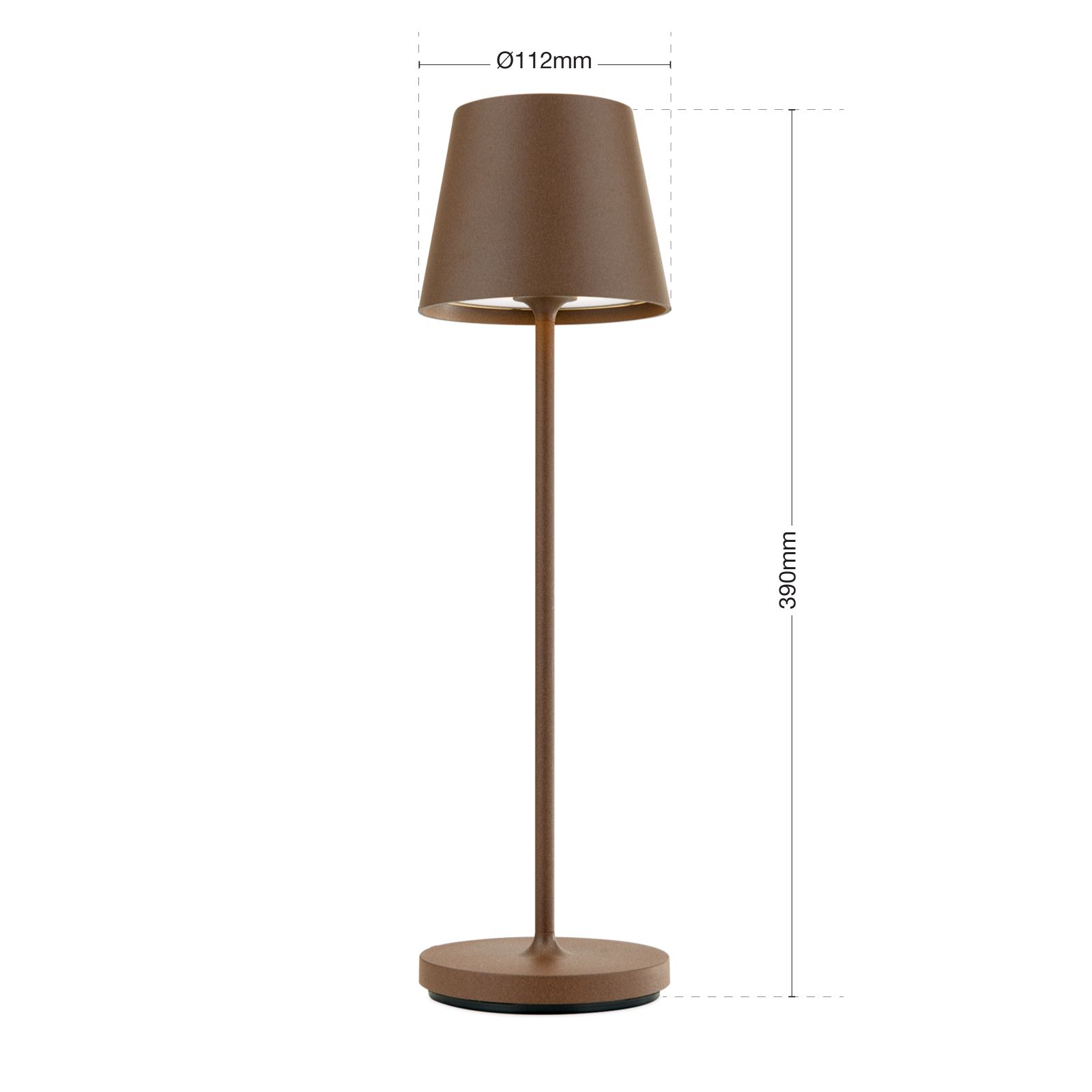 алуминий в ръждиво кафяво, полимер в ръждиво кафяв цвят, зарядна (4400 mAh) преносима лампа с USB докинг станция, драйвърът се купува отделно, touch димер 10-100%