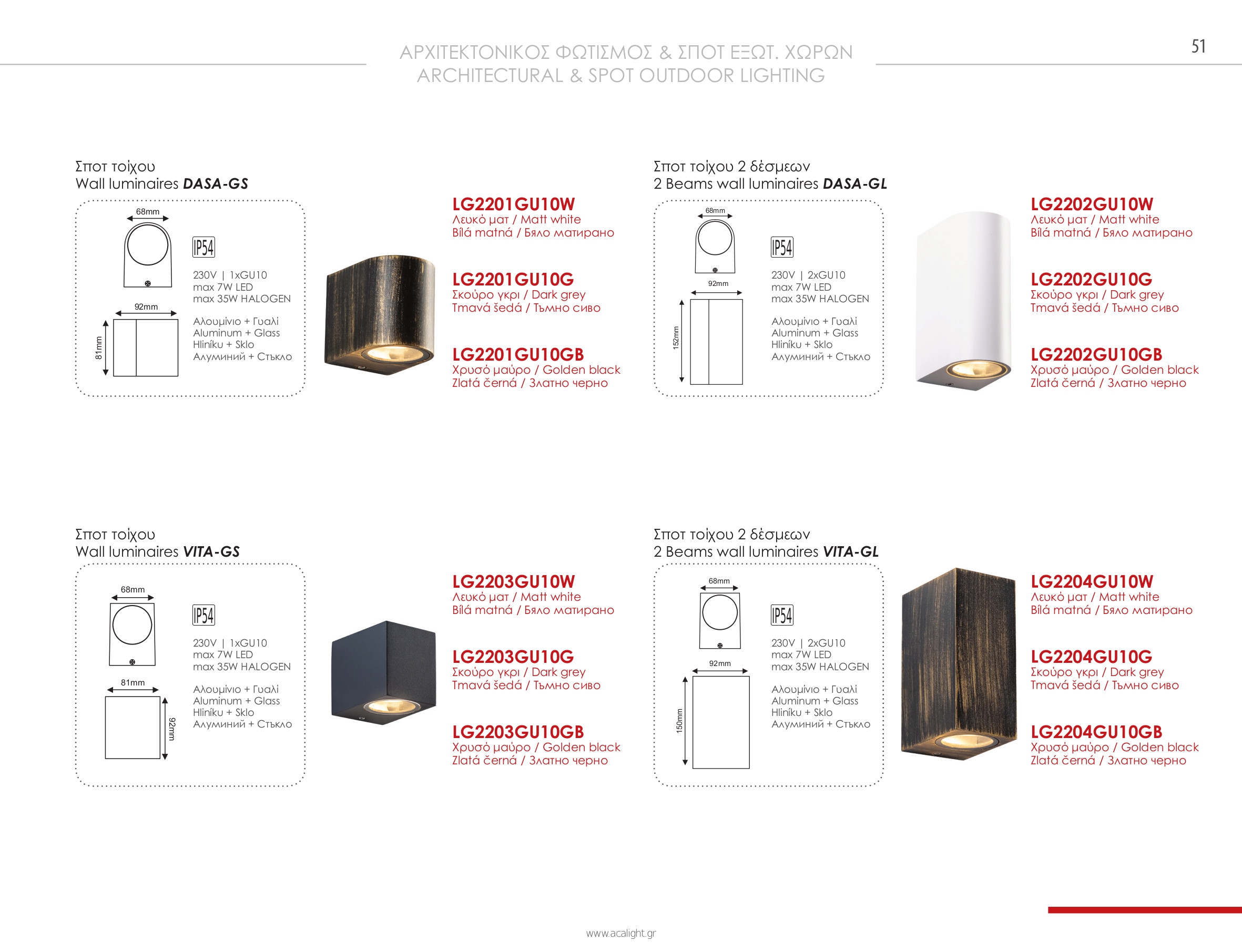 Осветителното тяло LG2201GU10GB ще осигури комфорт и естетика във всяко помещение, в което се постави. Цялостната визия и дизайн на лампата и вложените в изработката й материали, като алуминий в черен цвят със златна патина, ще допринесат за един неповторим стил. Благодарение на дългогодишния опит, качествените материали и строгия контрол на качеството на изработка на производителя ACA-Lighting (Гърция), LG2201GU10GB е на високо европейско ниво.