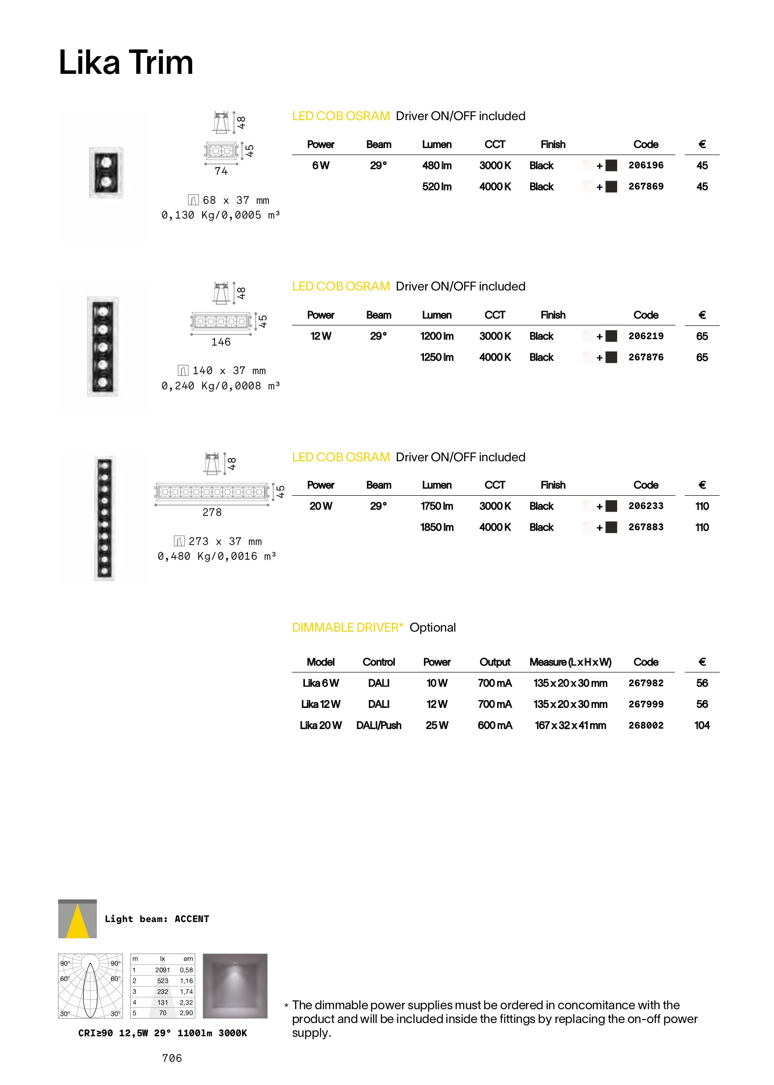 Осветителното тяло LIKA TRIM 21W 4000K ще осигури комфорт и естетика във всяко помещение, в което се постави. Цялостната визия и дизайн на лампата и вложените в изработката й материали, като лят алуминий в черно с бяла рамка и лъскав черен поликарбонатен рефлектор, ще допринесат за един неповторим стил. Благодарение на дългогодишния опит, качествените материали и строгия контрол на качеството на изработка на производителя Ideal-Lux (Италия), LIKA TRIM 21W 4000K е на високо европейско ниво.