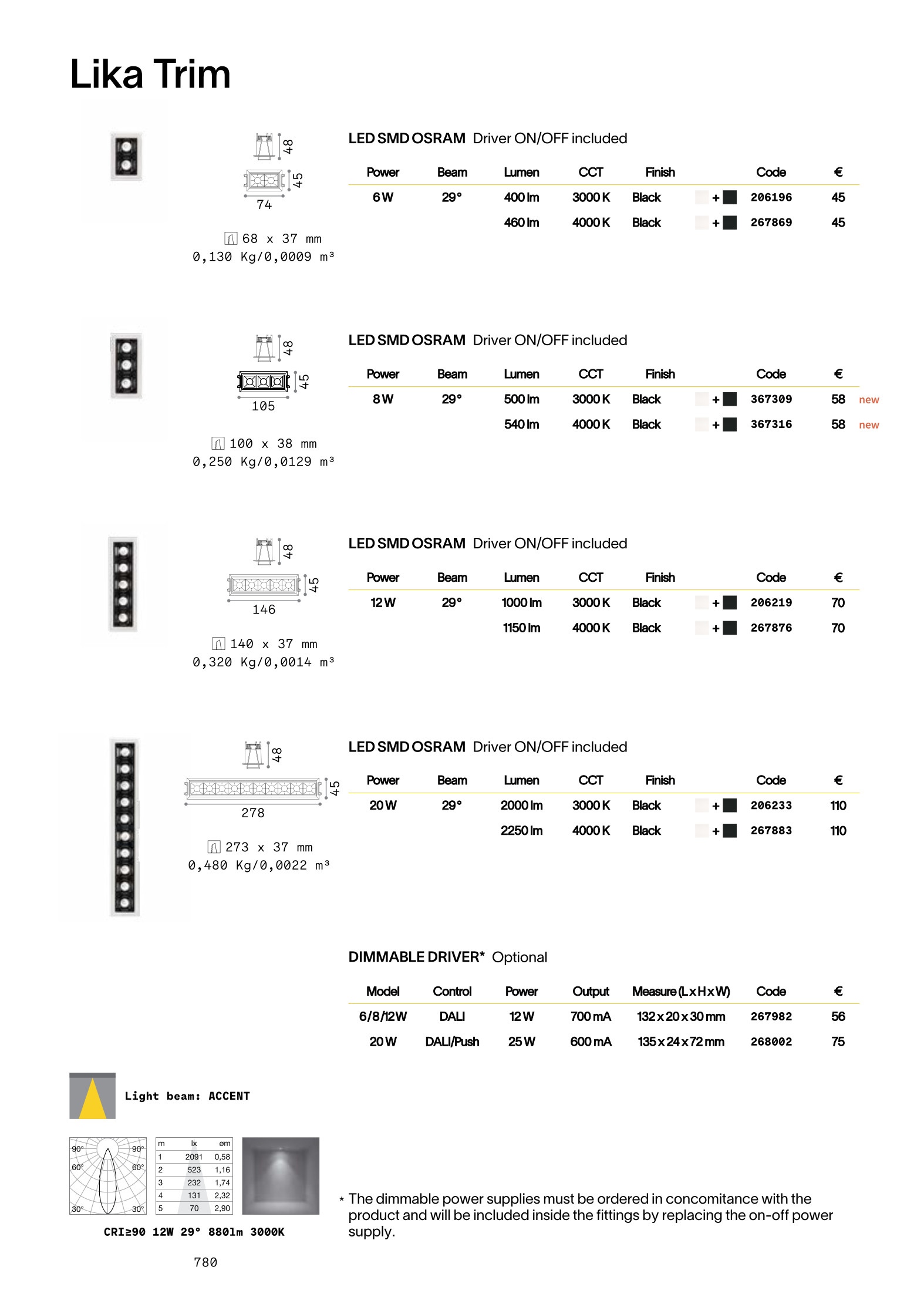 луничка / луна LIKA FI TRIM 06W 3000K BK