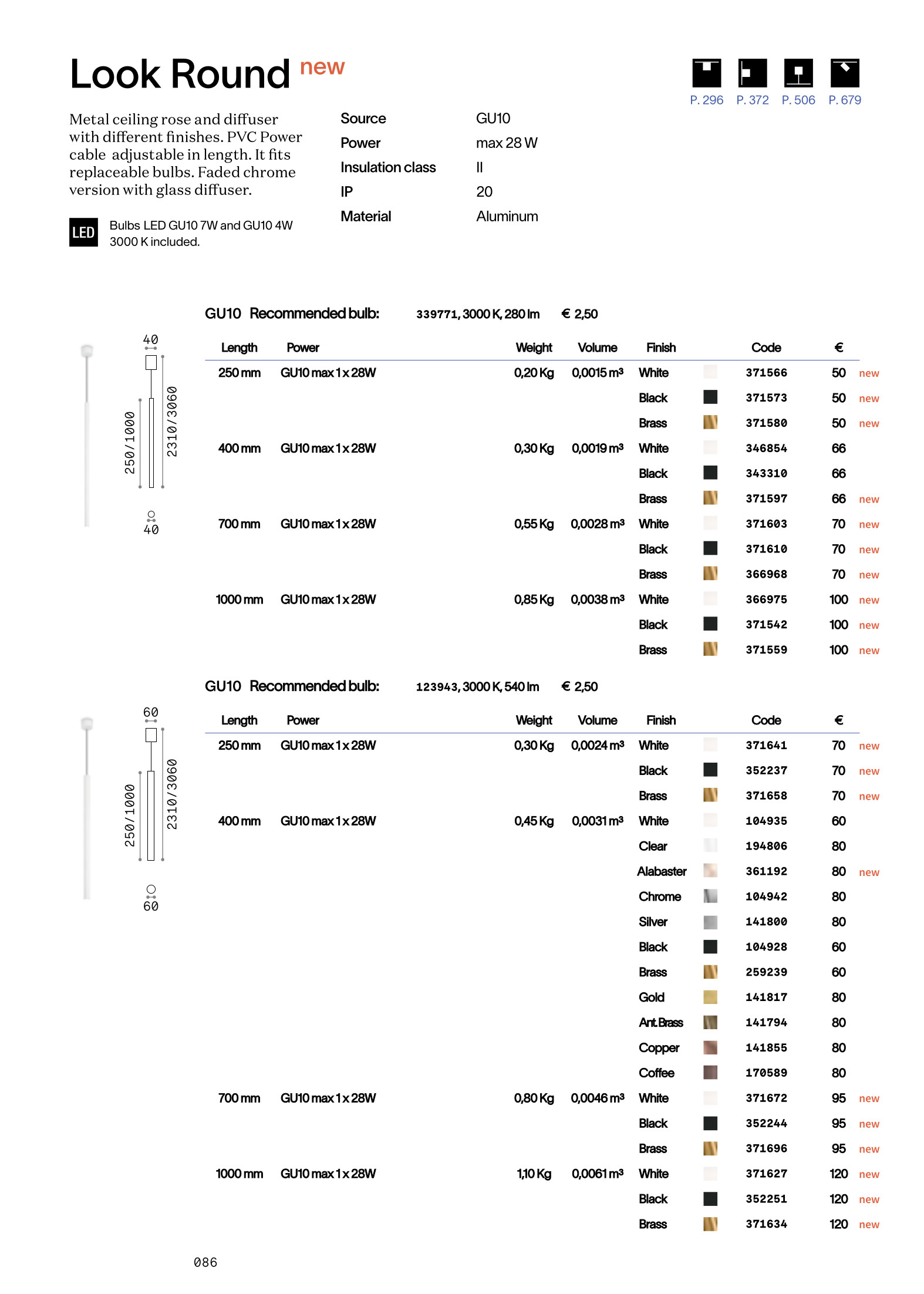 пендел LOOK SP1 ROUND D40 H250 BIANCO