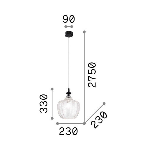 Ел. мощност 1 х 60 W Размери Ф23см x 33см x 275см Производител Ideal-Lux, Италия