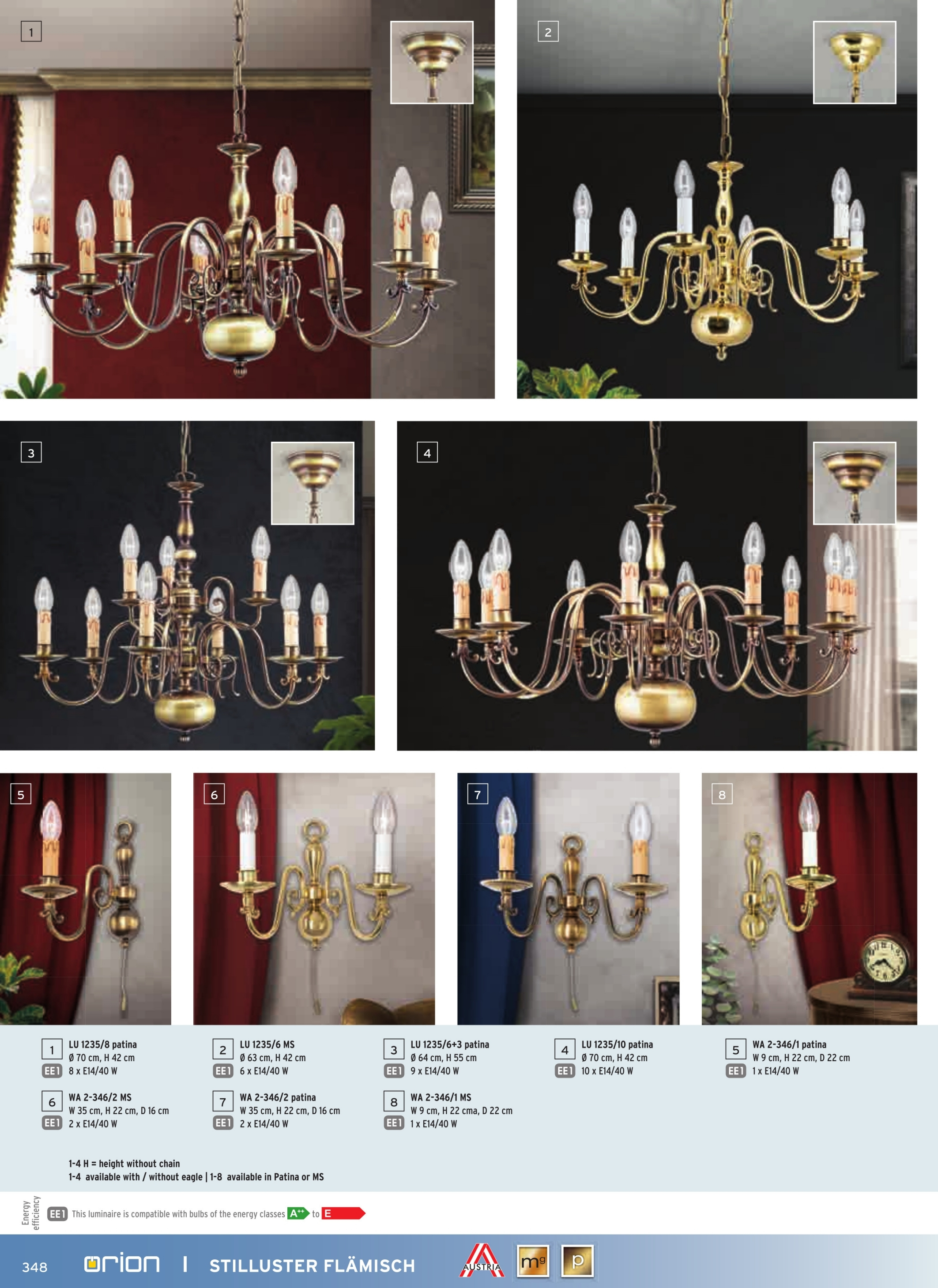 Осветителното тяло LU 1235/6 MS ще осигури комфорт и естетика във всяко помещение, в което се постави. Цялостната визия и дизайн на лампата и вложените в изработката й материали, като масивен месинг с покритие от блестящ месинг във фламандски стил, ще допринесат за един неповторим стил. Благодарение на дългогодишния опит, качествените материали и строгия контрол на качеството на изработка на производителя Orion (Австрия), LU 1235/6 MS е на високо европейско ниво.