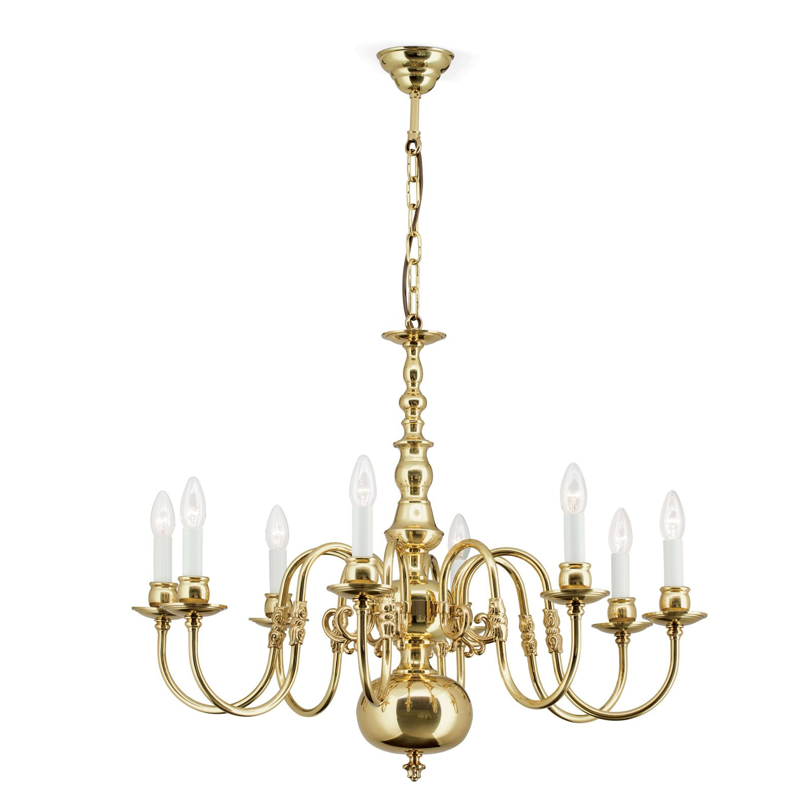 Осветителното тяло LU 1238/8 MS - ohne Adler ще осигури комфорт и естетика във всяко помещение, в което се постави. Цялостната визия и дизайн на лампата и вложените в изработката й материали, като масивен месинг с покритие от блестящ месинг във фламандски стил, ще допринесат за един неповторим стил. Благодарение на дългогодишния опит, качествените материали и строгия контрол на качеството на изработка на производителя Orion (Австрия), LU 1238/8 MS - ohne Adler е на високо европейско ниво.