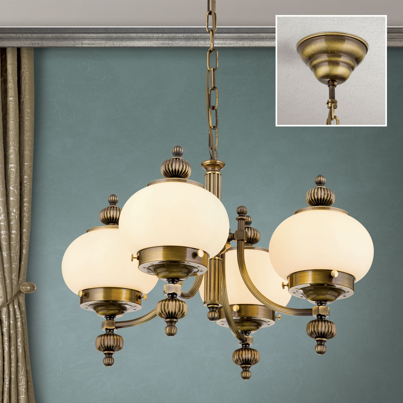 Магазини ОРИОН представят осветителното тяло LU 1319/4 Patina/328 champ matt, което представлява полилей в класически стил. Лампата е част от категорията полилеи и е подходяща за различни помещения и пространства, като например всекидневна / хол, спалня, кухня, трапезария, офис.