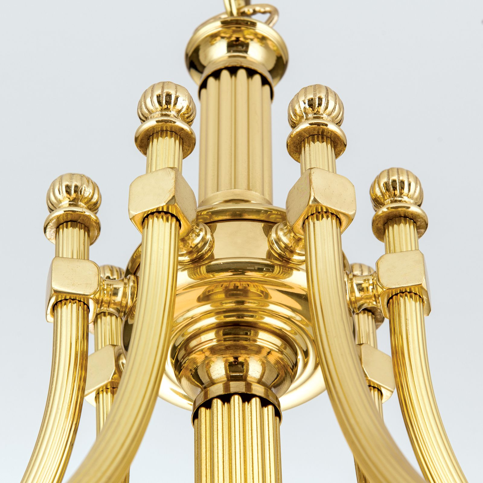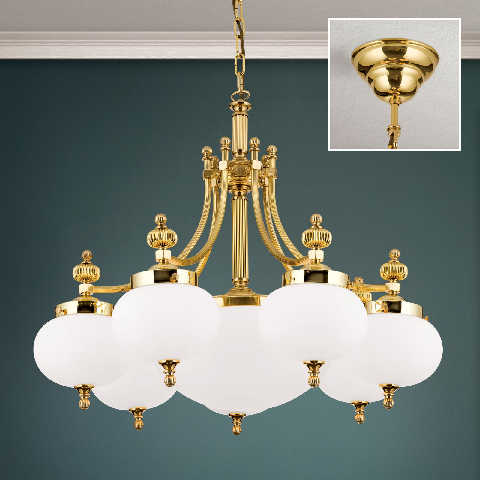 За стила и естетиката на интериора допринасят, както цялостната визия и дизайн на осветителното тяло, така и вложените от производителя в изработката висококачествени материали, като масивен месинг с покритие от блестящ месинг, стъкло в цвят бял опал мат.