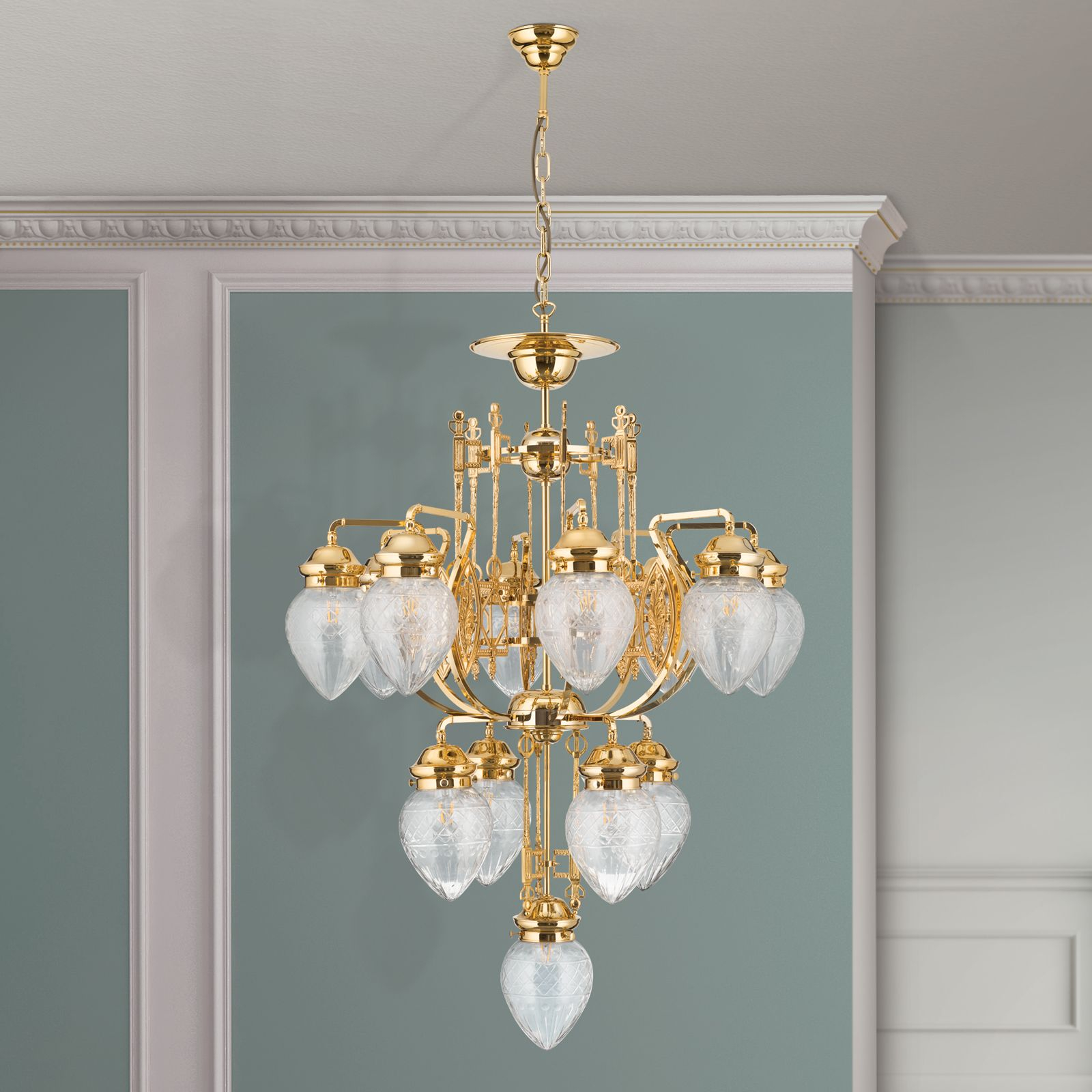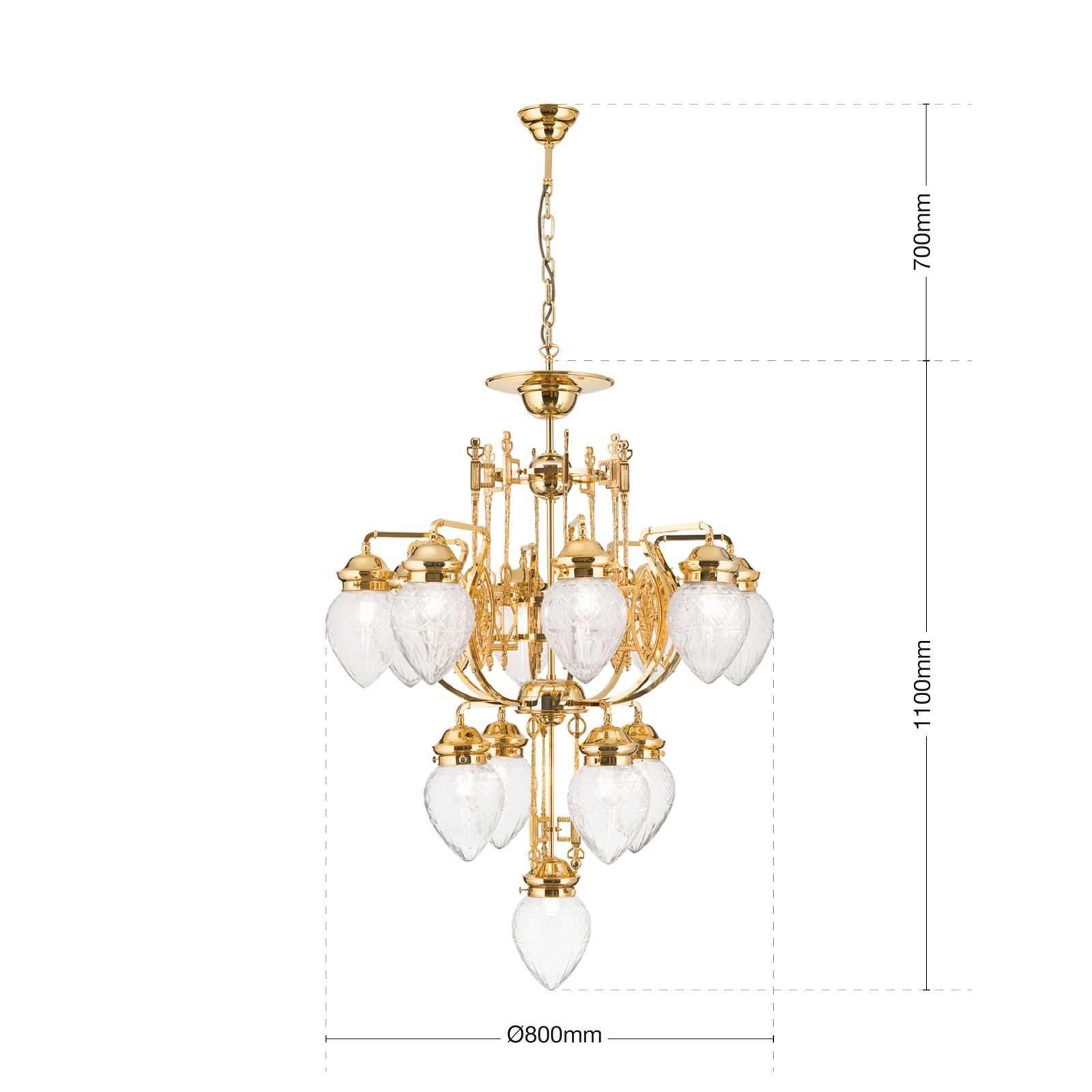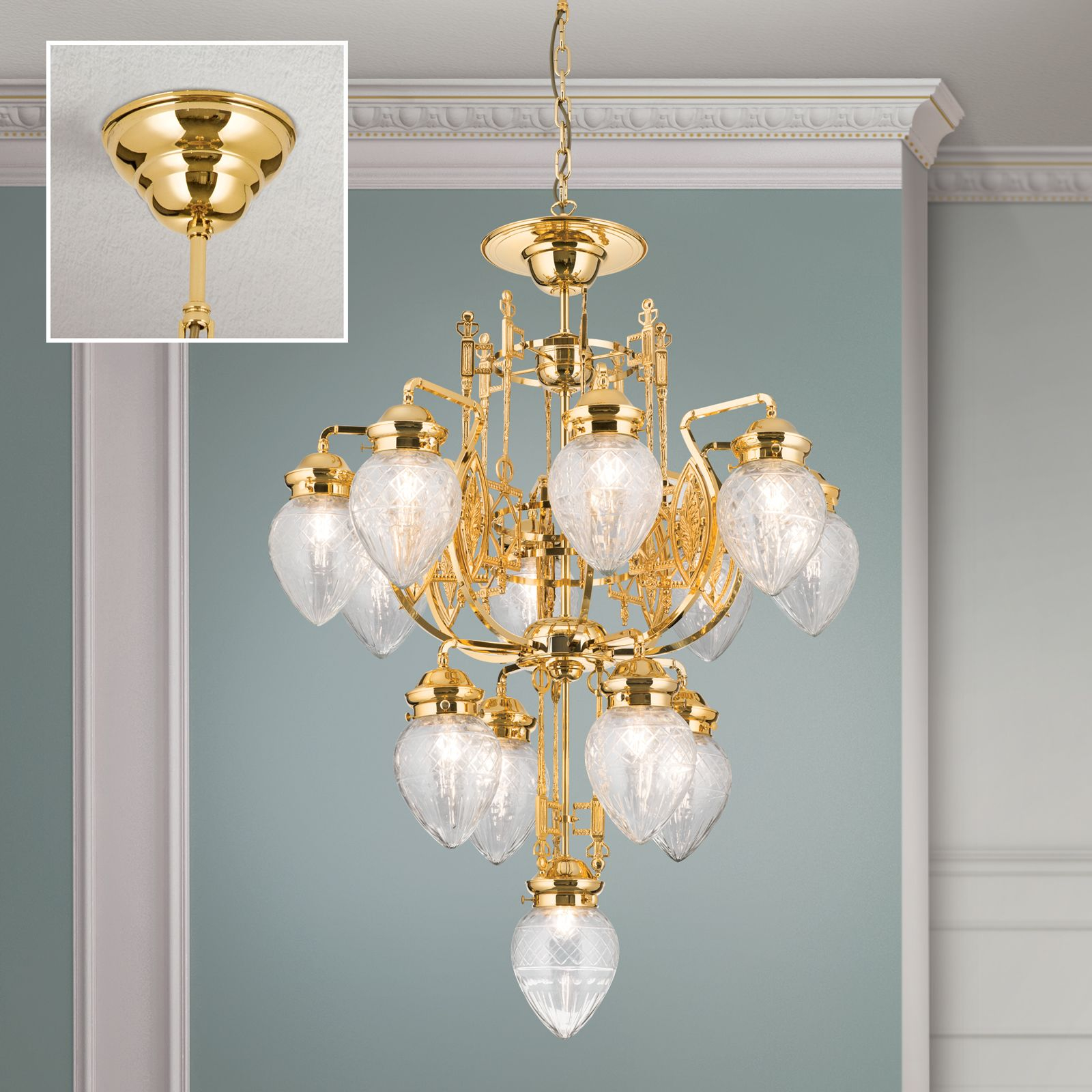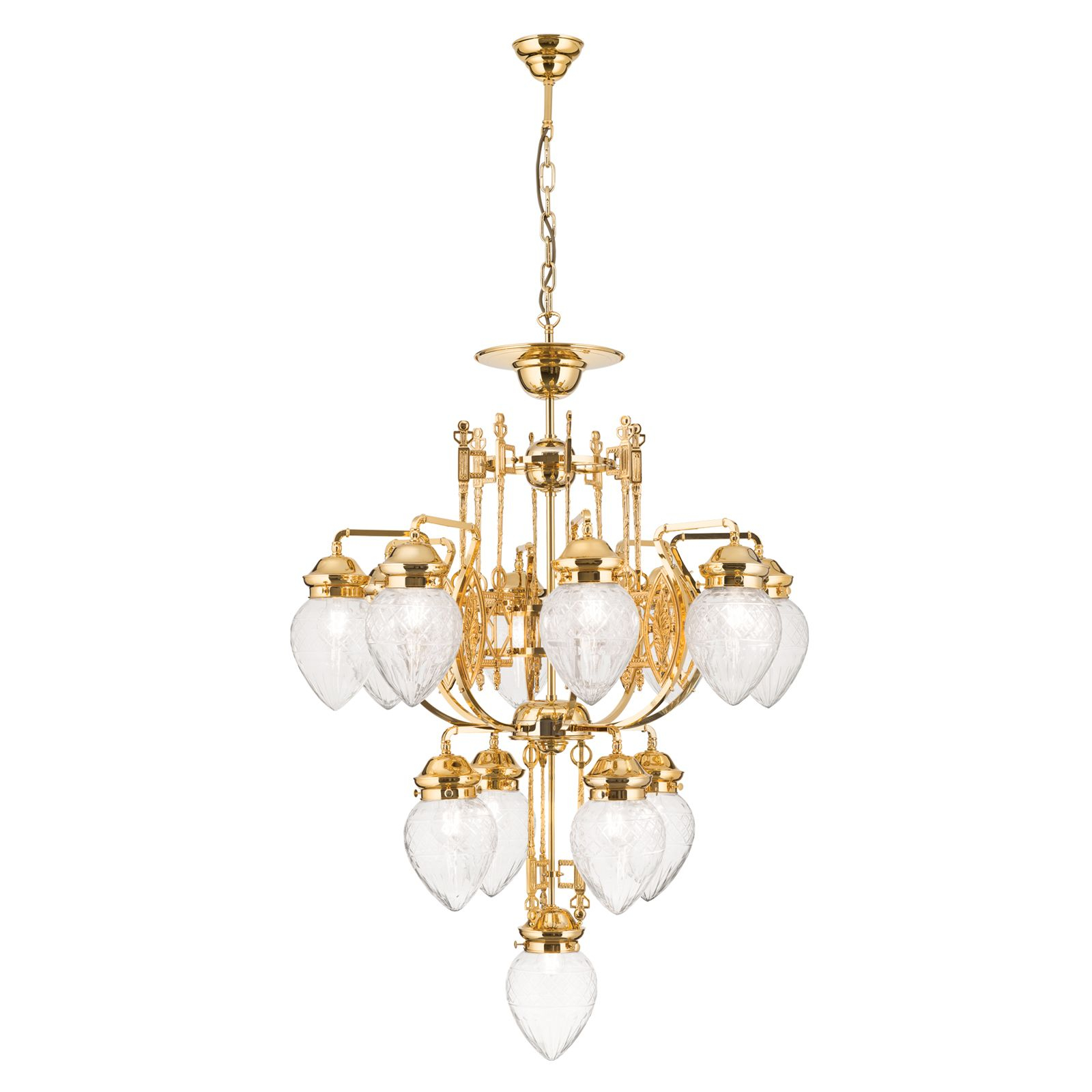 Осветителното тяло LU 1440/8+4+1 gold/411 klar-Schliff представлява полилей в класически, флорален стил. LU 1440/8+4+1 gold/411 klar-Schliff е от категорията осветителни тела и е подходящо за осветяване на различни помещения и пространства като: всекидневна / хол, спалня, кухня, трапезария, офис.