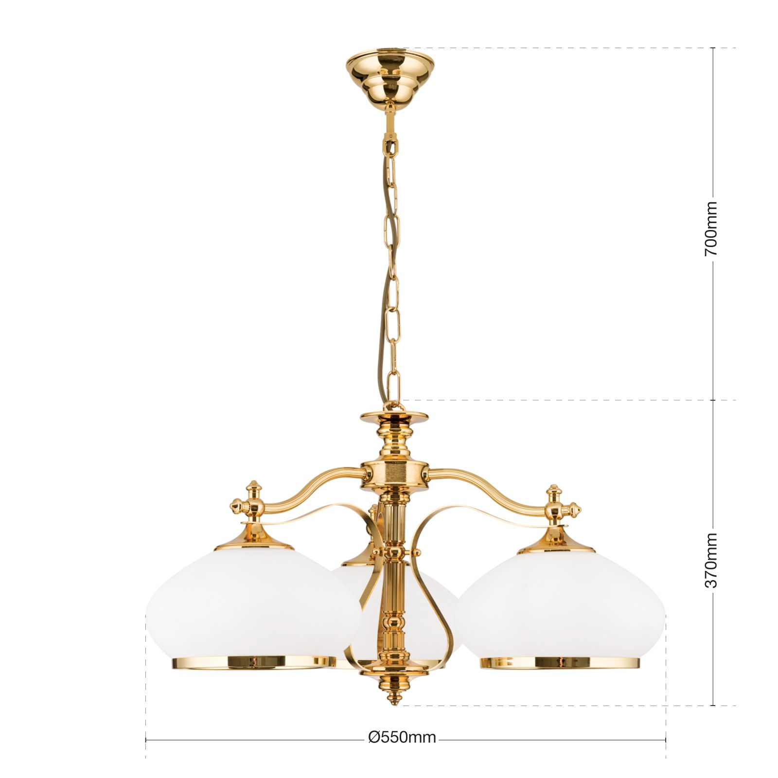 Магазини ОРИОН представят осветителното тяло LU 1460/3 gold/385 opal-gold, което представлява полилей в класически стил. Лампата е част от категорията полилеи и е подходяща за различни помещения и пространства, като например всекидневна / хол, спалня, кухня, трапезария, офис.
