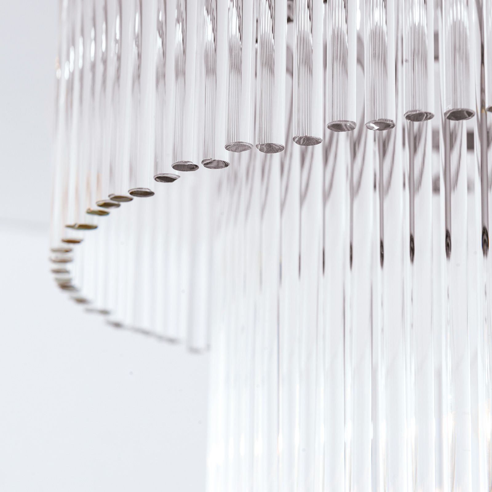 За стила и естетиката на интериора допринасят, както цялостната визия и дизайн на осветителното тяло, така и вложените от производителя в изработката висококачествени материали, като масивен месингс покритие в цвят бронз, цилиндрични стъклени призми,.