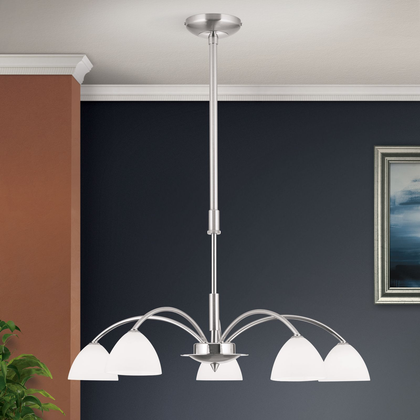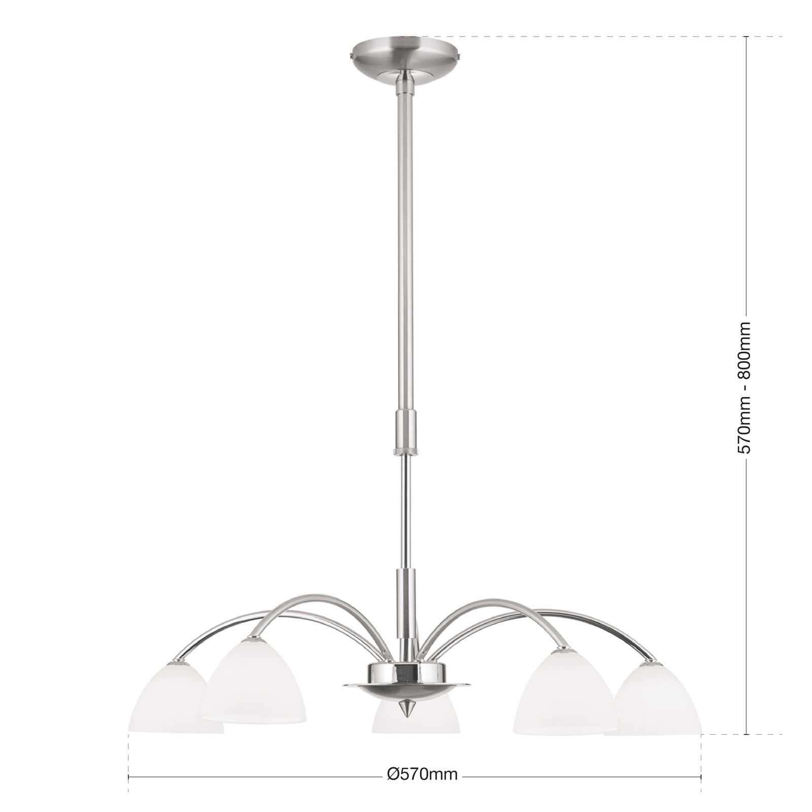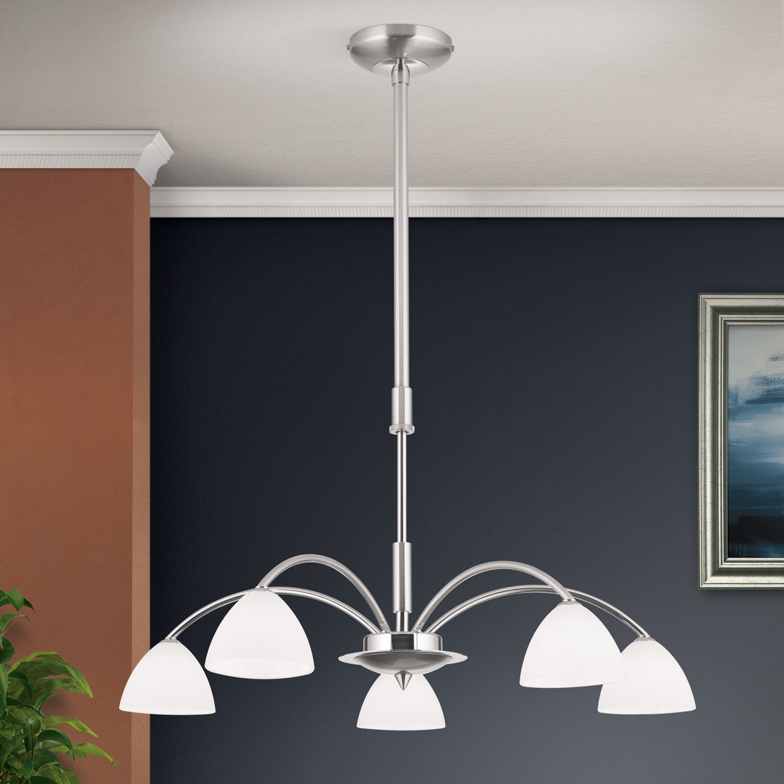 Осветителното тяло LU 1599/5 satin/438 opal представлява полилей в съвременен стил. LU 1599/5 satin/438 opal е от категорията осветителни тела и е подходящо за осветяване на различни помещения и пространства като: всекидневна / хол, спалня, кухня, трапезария, офис.