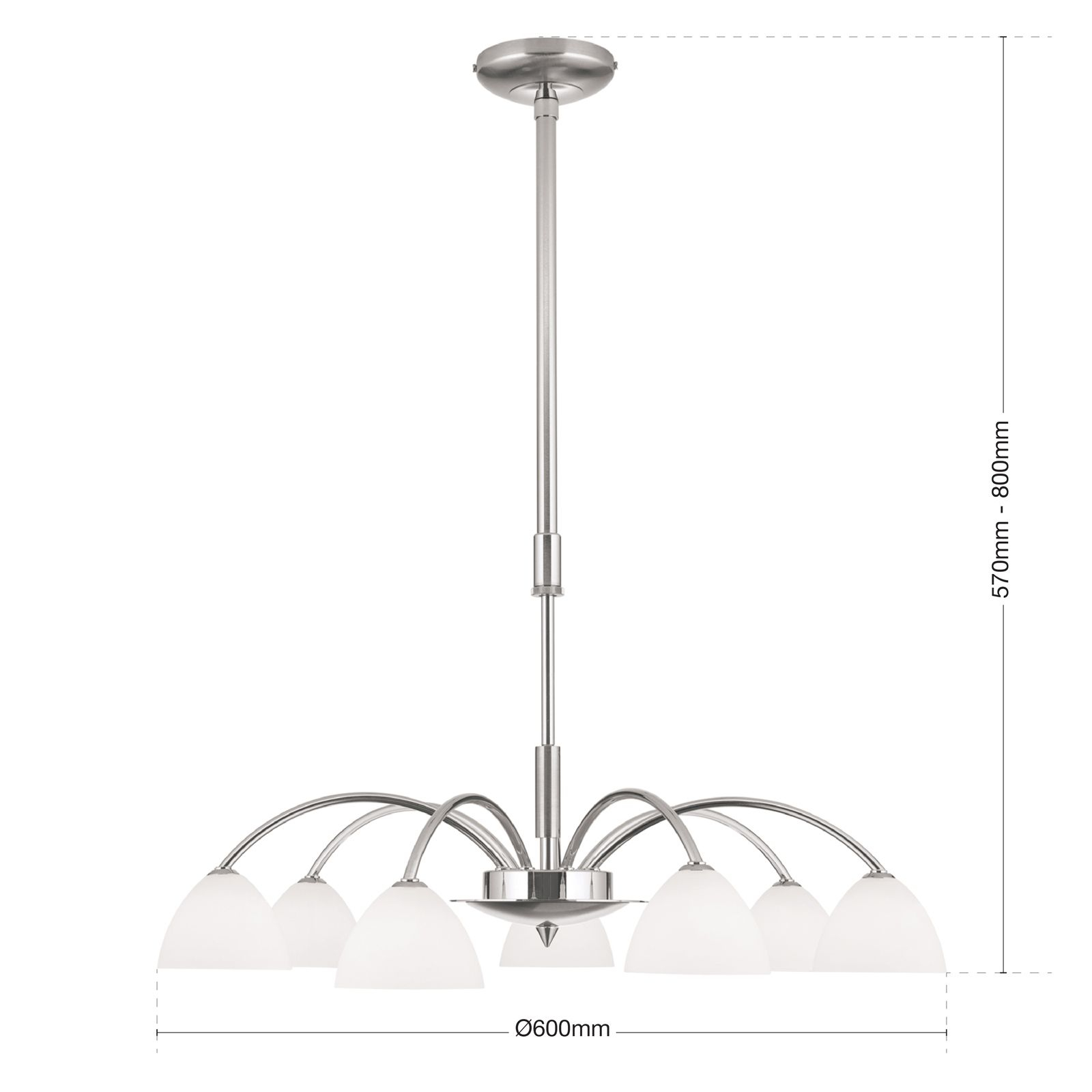 Осветителното тяло LU 1599/7 satin/438 opal представлява полилей в съвременен стил. LU 1599/7 satin/438 opal е от категорията осветителни тела и е подходящо за осветяване на различни помещения и пространства като: всекидневна / хол, спалня, кухня, трапезария, офис.