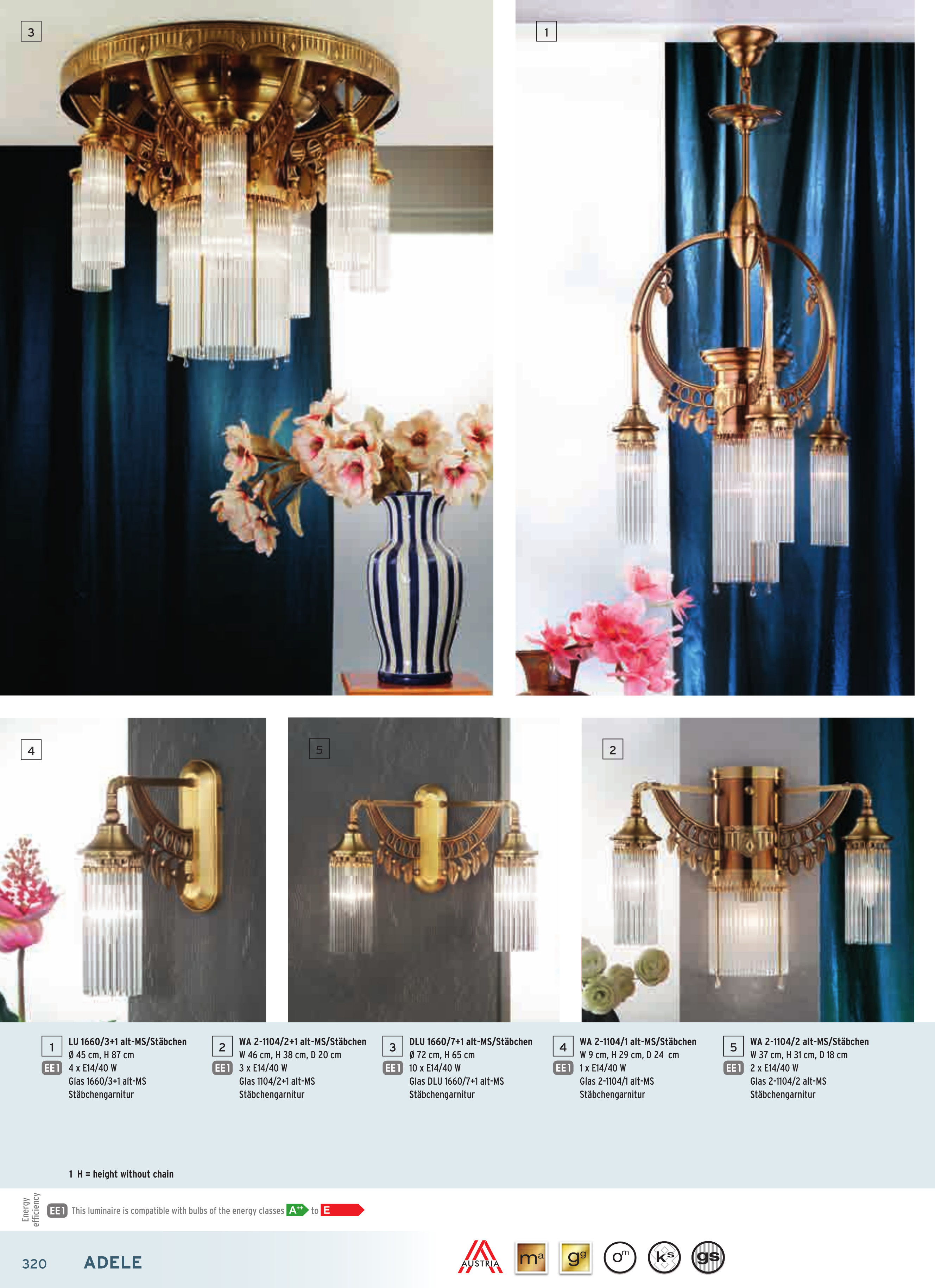 Осветителното тяло LU 1660/3+1 alt-MS/Stabchen (4xE14) представлява полилей в дизайнерски стил. LU 1660/3+1 alt-MS/Stabchen (4xE14) е от категорията осветителни тела и е подходящо за осветяване на различни помещения и пространства като: всекидневна / хол, спалня, кухня, трапезария, офис.