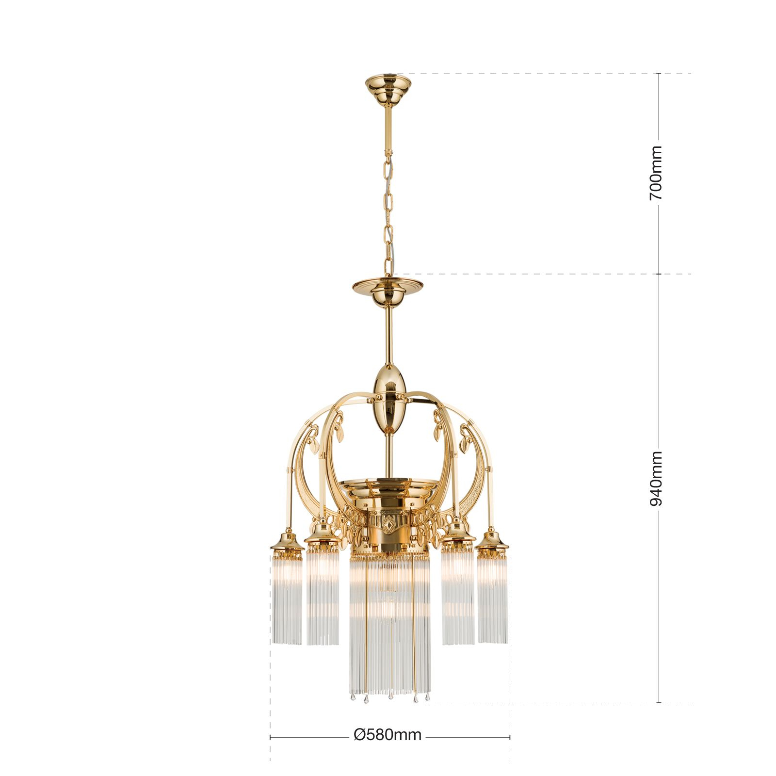 Осветителното тяло LU 1660/5+1 gold/Stabchen (5xE14+1xE27) представлява полилей в дизайнерски стил. LU 1660/5+1 gold/Stabchen (5xE14+1xE27) е от категорията осветителни тела и е подходящо за осветяване на различни помещения и пространства като: всекидневна / хол, спалня, кухня, трапезария, офис.