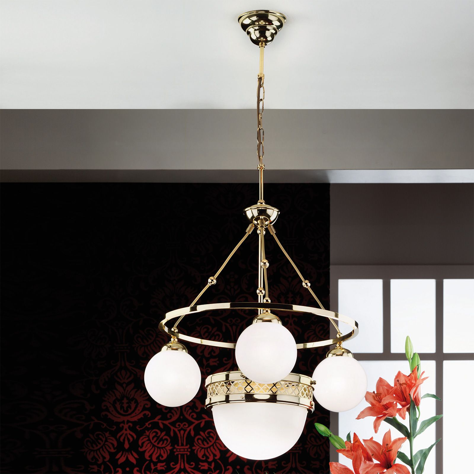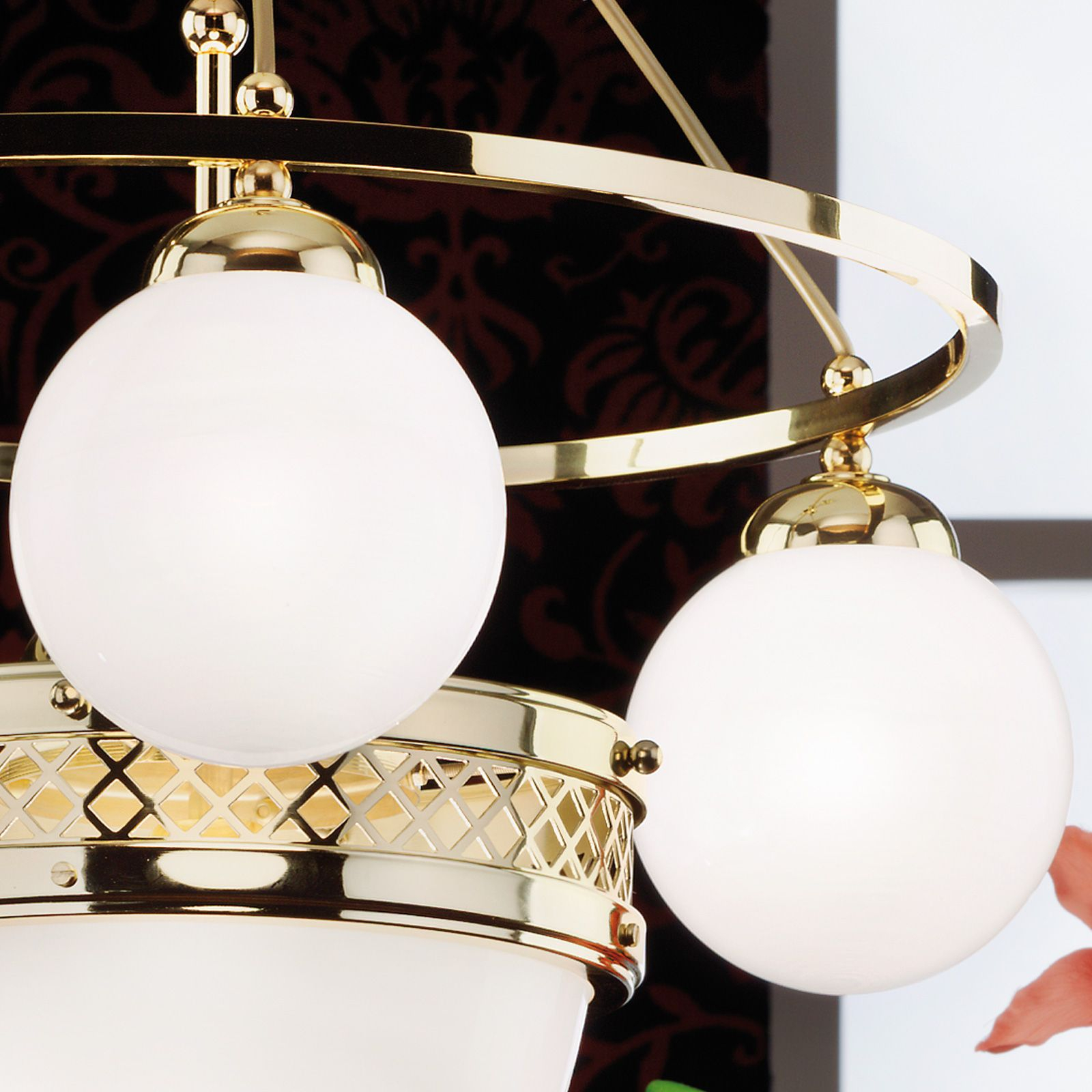 За стила и естетиката на интериора допринасят, както цялостната визия и дизайн на осветителното тяло, така и вложените от производителя в изработката висококачествени материали, като стомана с покритие от блестящ месинг, стъкло в цвят блестящ опал.