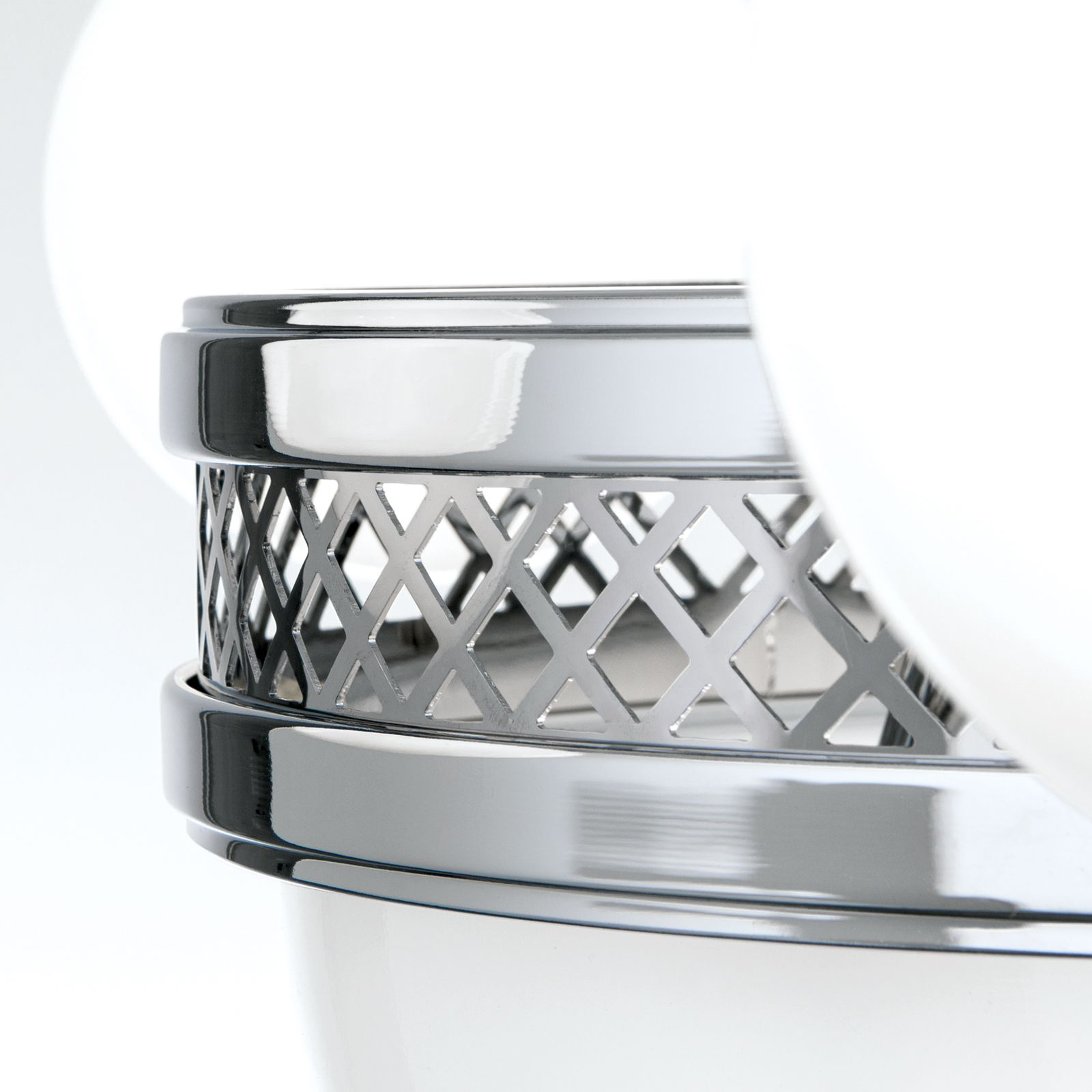 масивен месинг с покритие от блестящ никел, стъкло в цвят лъскав опал