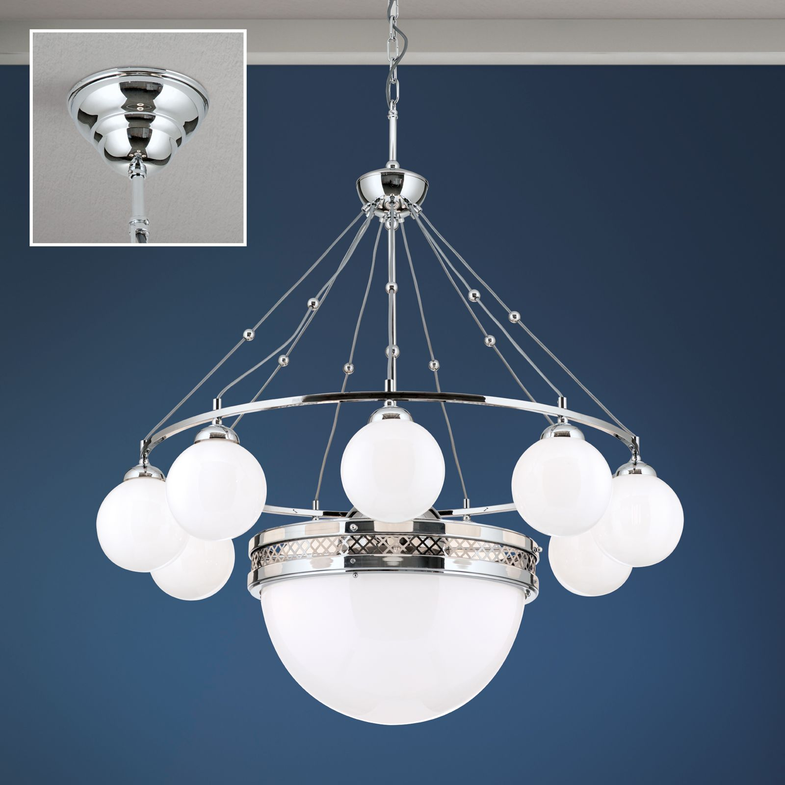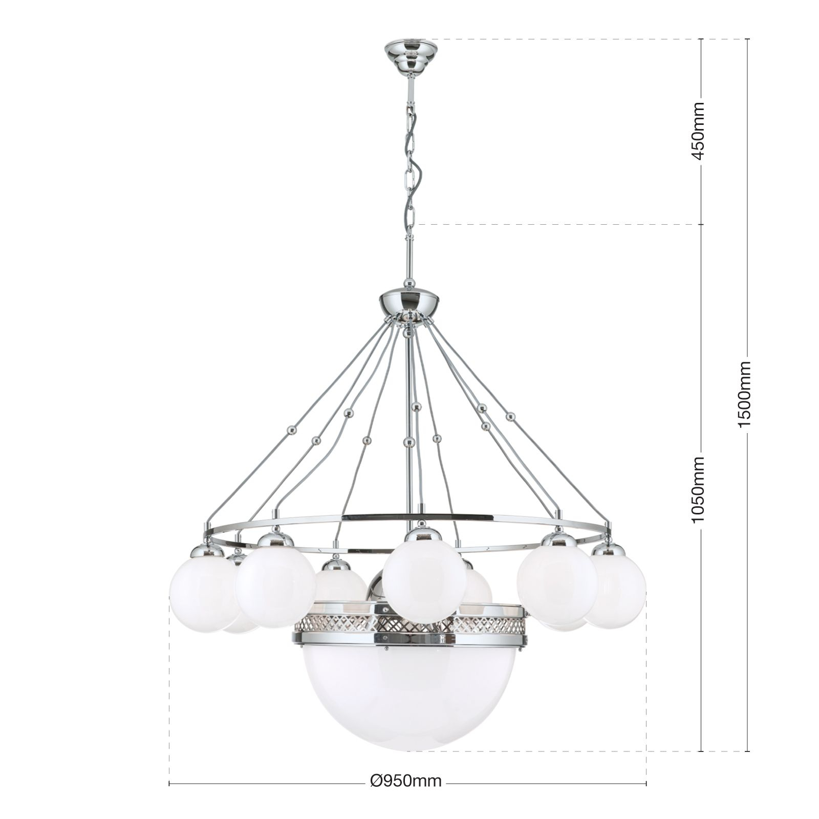 Осветителното тяло LU 1713/9+1 nickel/150, 491 opal glanz. представлява полилей в съвременен стил. LU 1713/9+1 nickel/150, 491 opal glanz. е от категорията осветителни тела и е подходящо за осветяване на различни помещения и пространства като: всекидневна / хол, спалня, кухня, трапезария, офис.