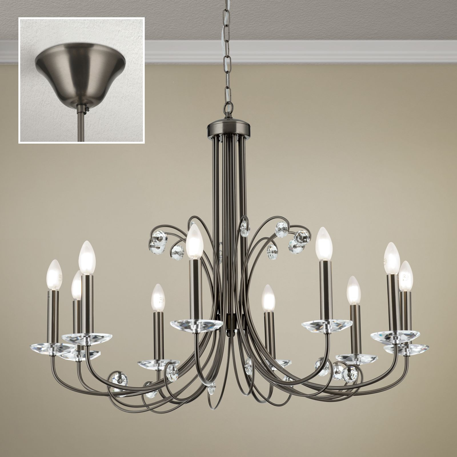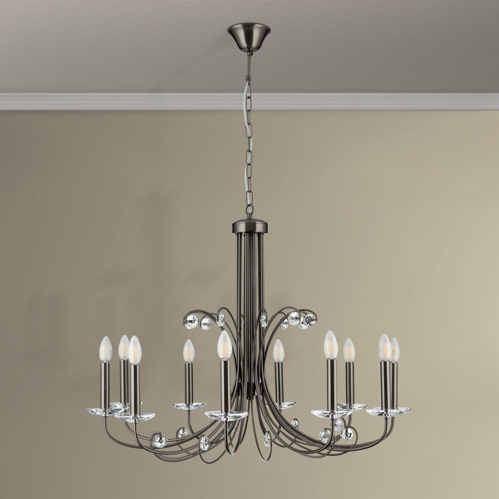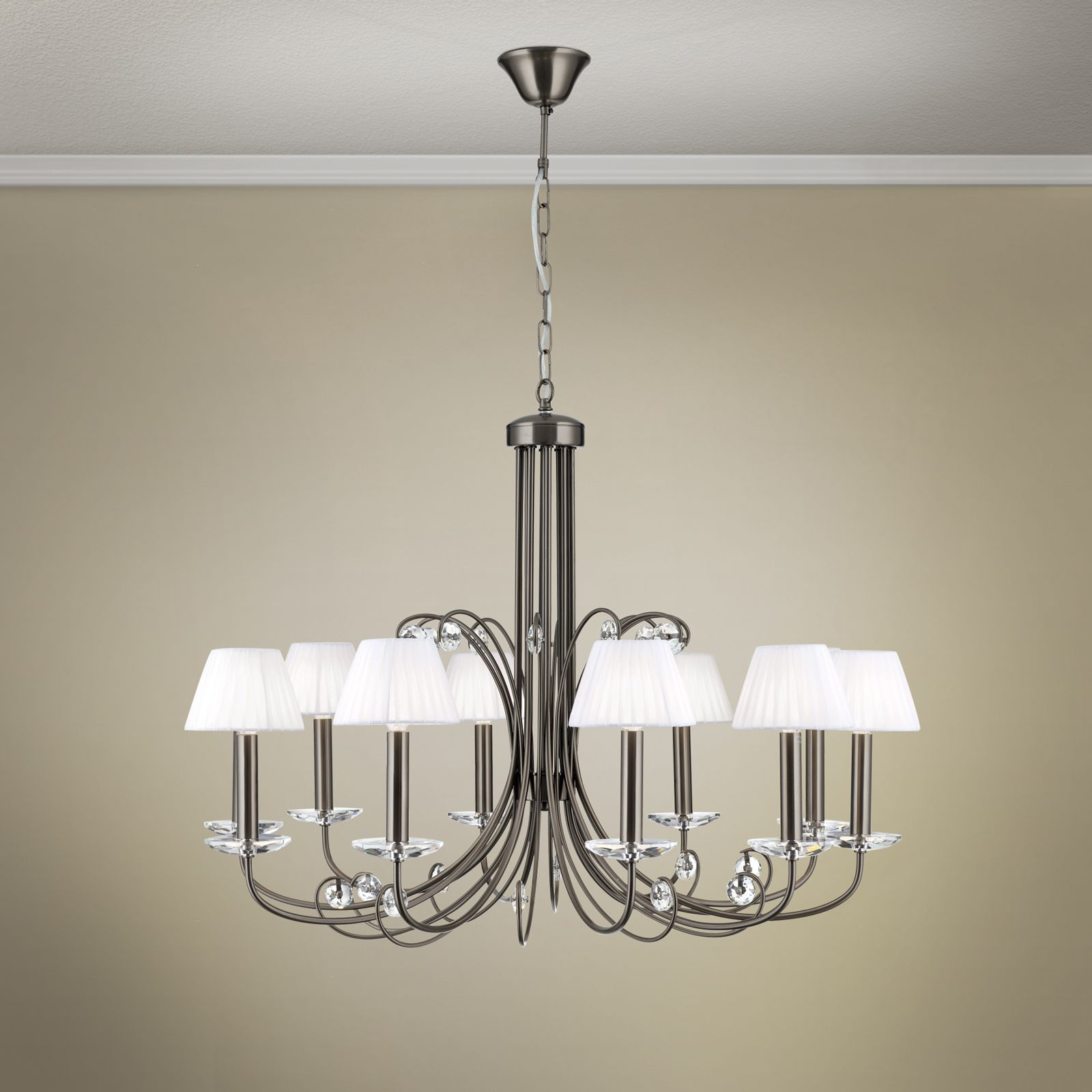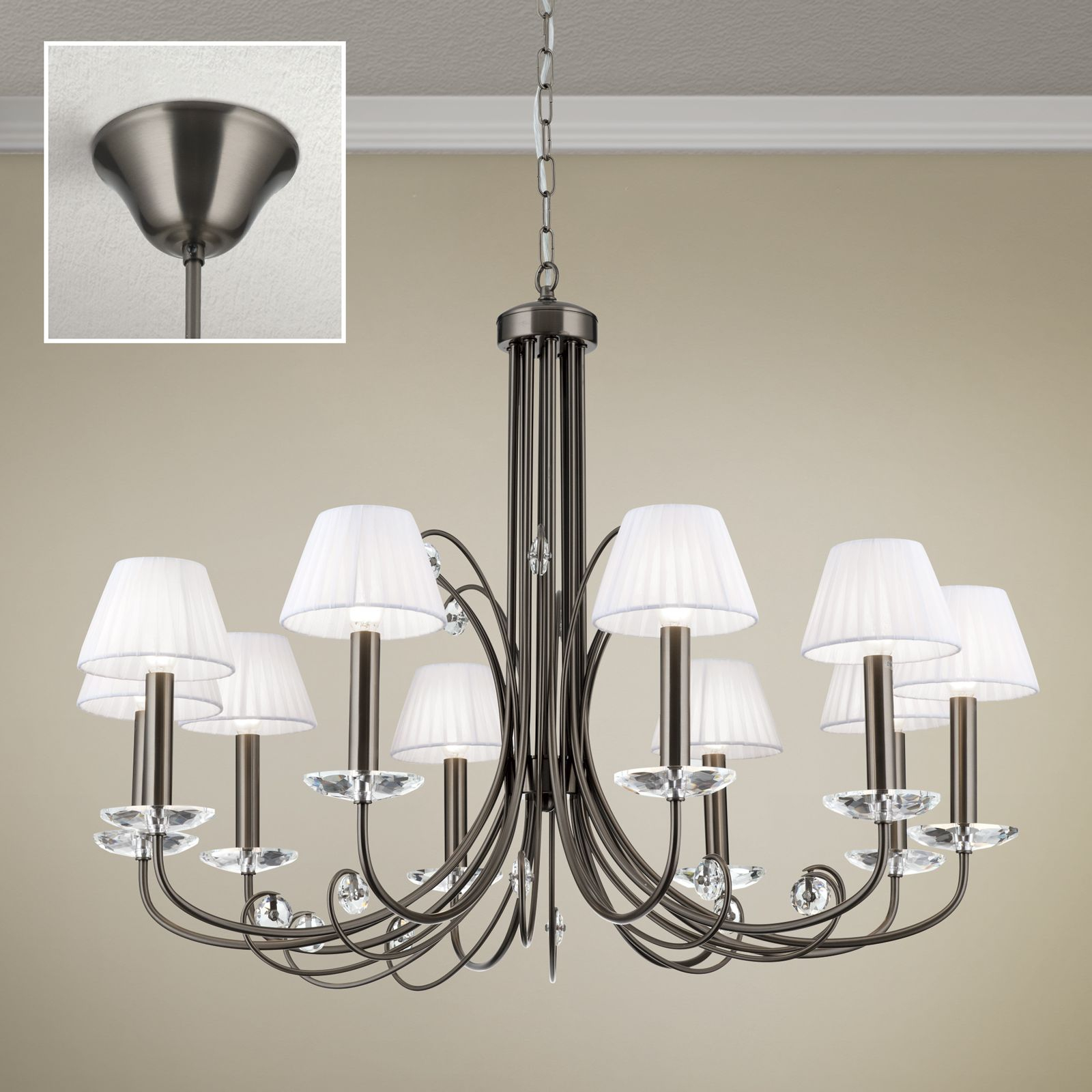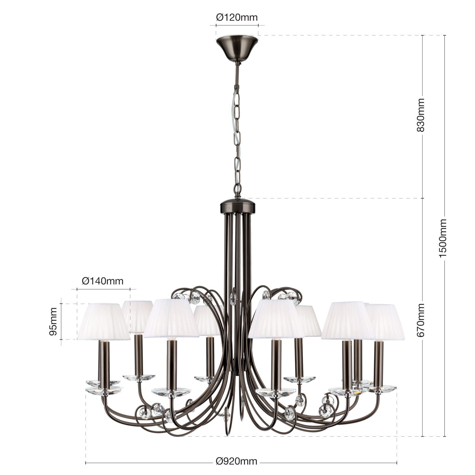 Осветителното тяло LU 1842/10 dark-nickel (10xE14) представлява полилей в класически стил. LU 1842/10 dark-nickel (10xE14) е от категорията осветителни тела и е подходящо за осветяване на различни помещения и пространства като: всекидневна / хол, спалня, кухня, трапезария, офис.
