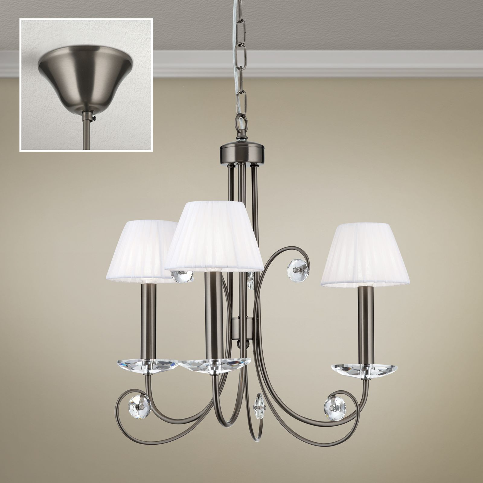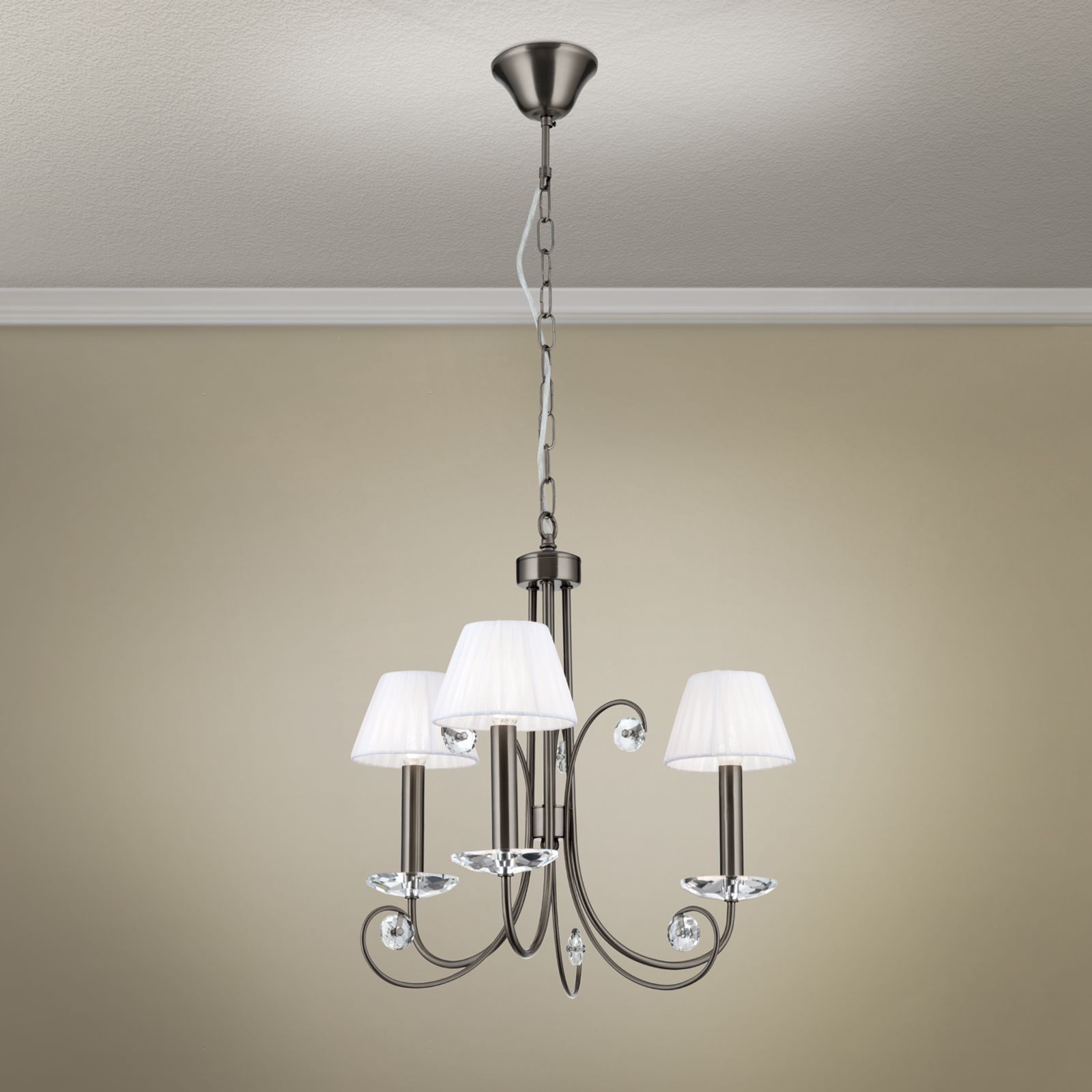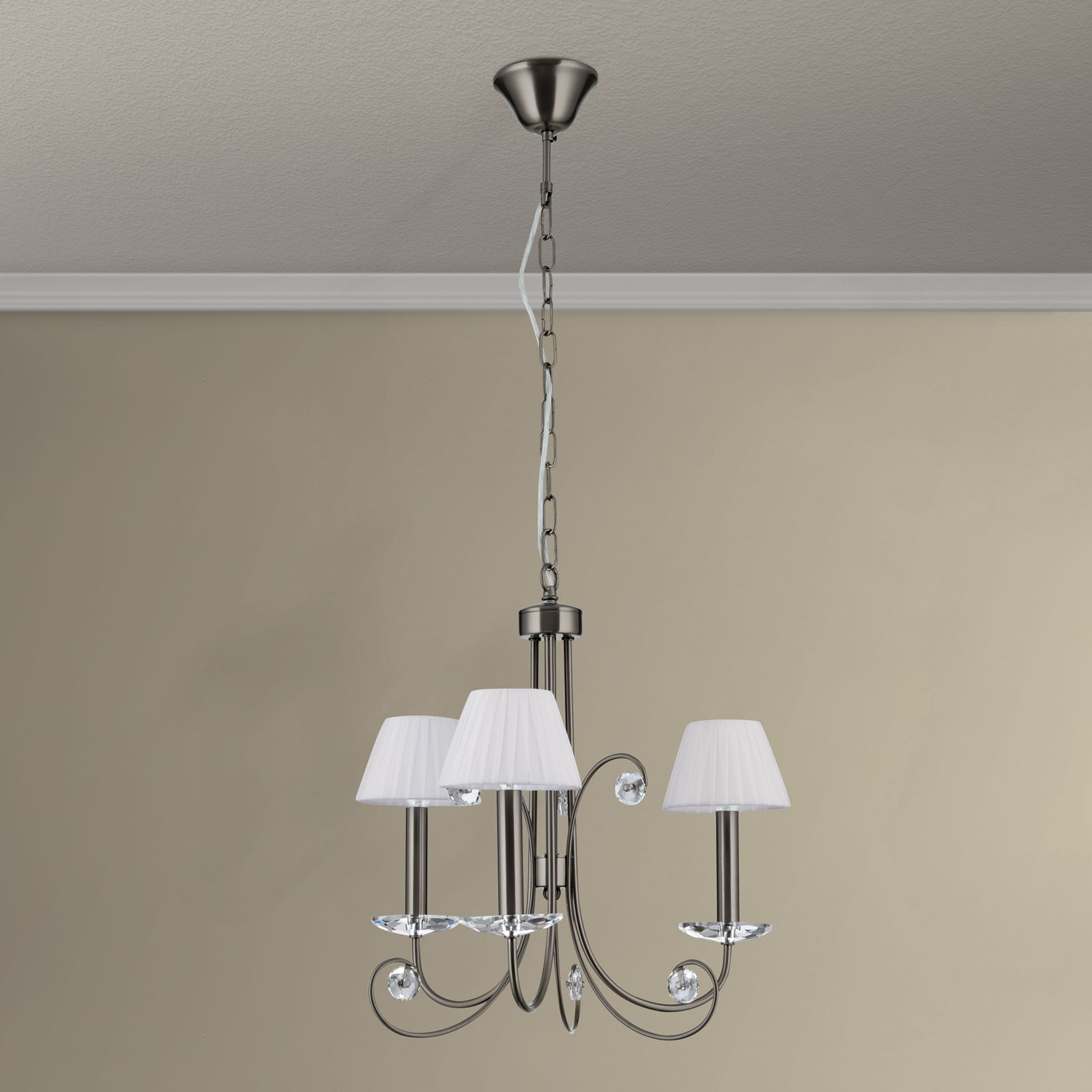 Осветителното тяло LU 1842/3 dark-nickel (3xE14) представлява полилей в класически стил. LU 1842/3 dark-nickel (3xE14) е от категорията осветителни тела и е подходящо за осветяване на различни помещения и пространства като: всекидневна / хол, спалня, кухня, трапезария, офис.
