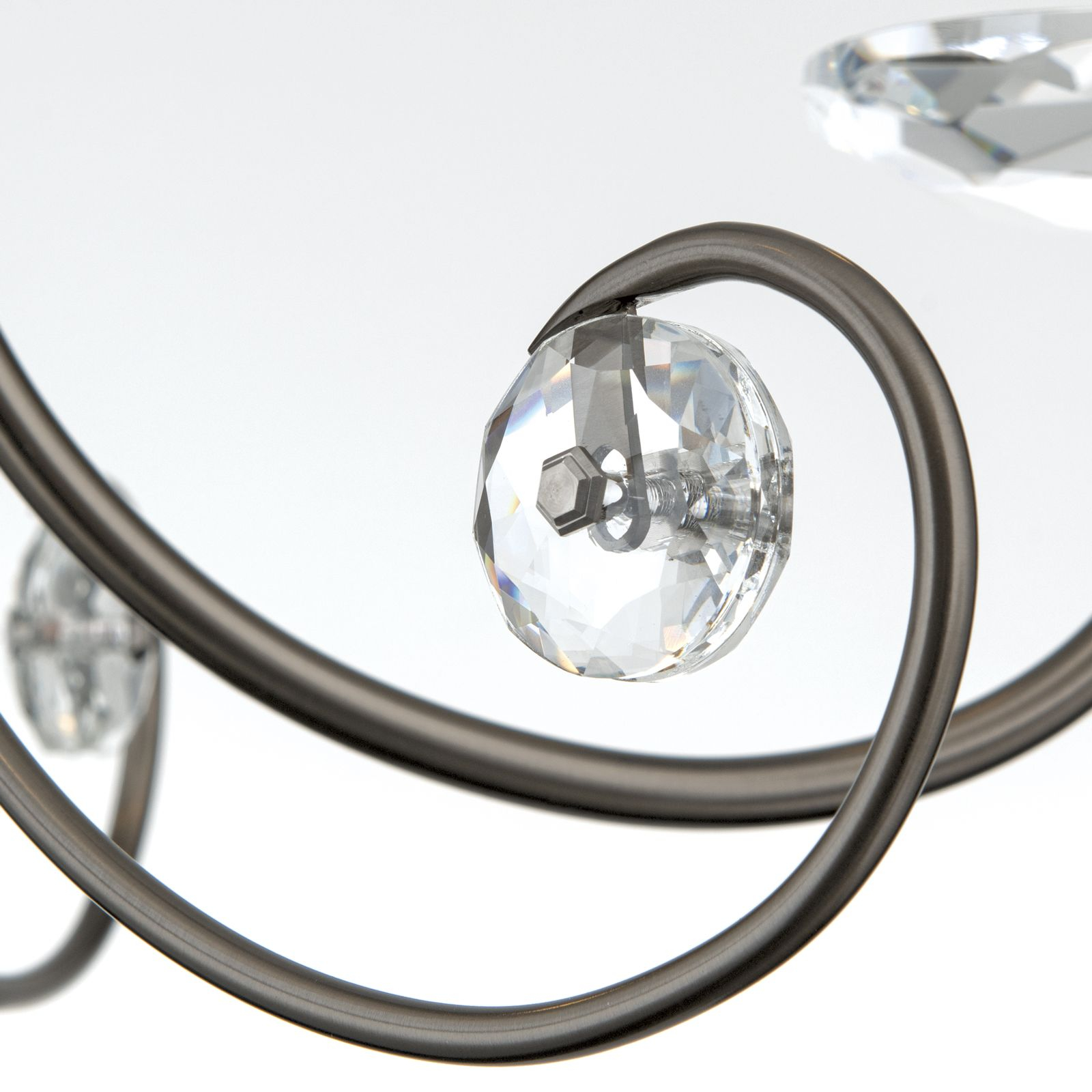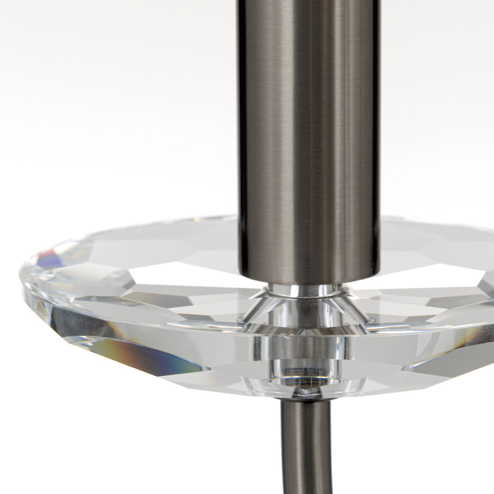 метал с покритие от тъмен матов никел, детайли от кристал К9, абажурите от бял текстил се поръчват отделно