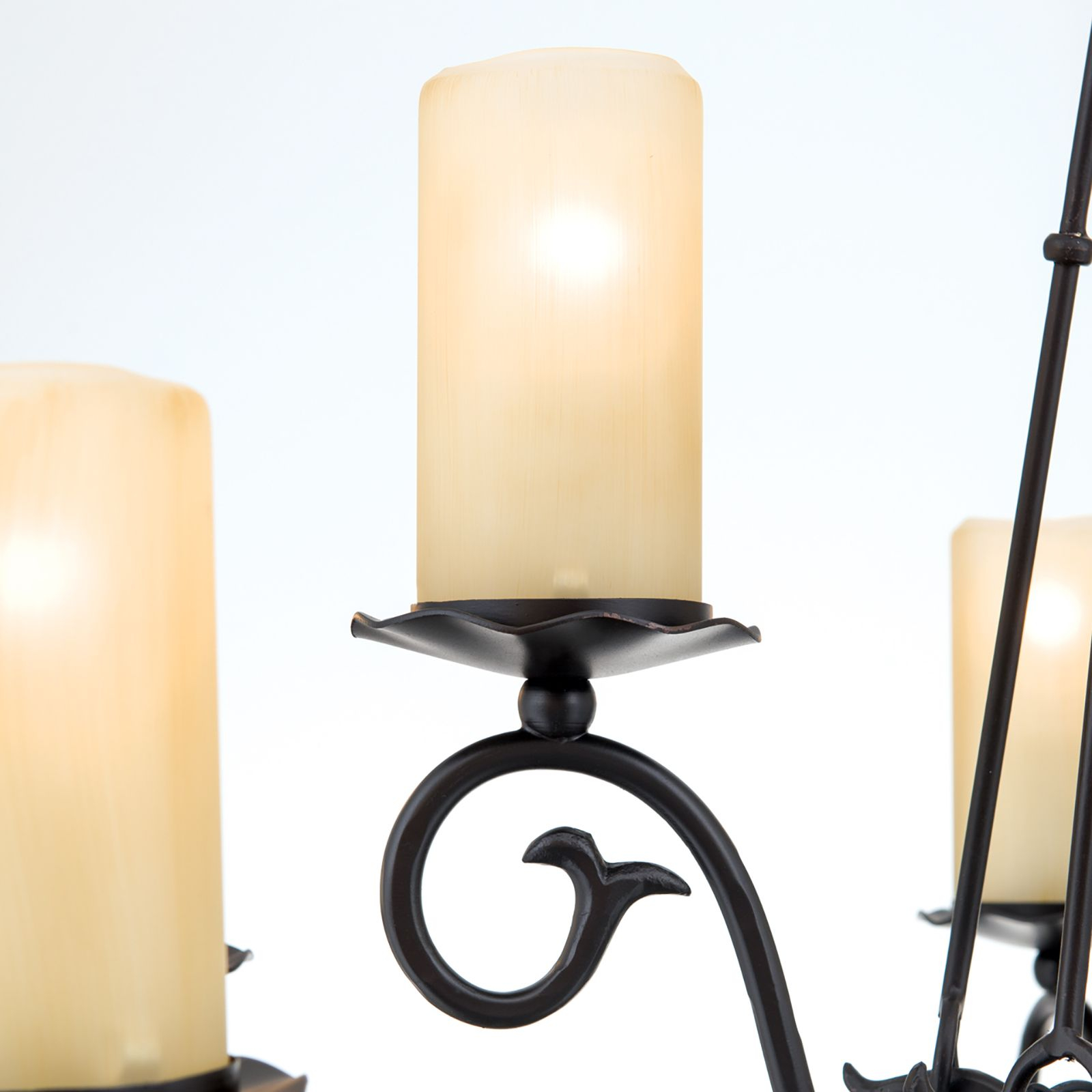 За стила и естетиката на интериора допринасят, както цялостната визия и дизайн на осветителното тяло, така и вложените от производителя в изработката висококачествени материали, като метал в цвят тъмен антик, декоративно стъкло в цвят опал мат.