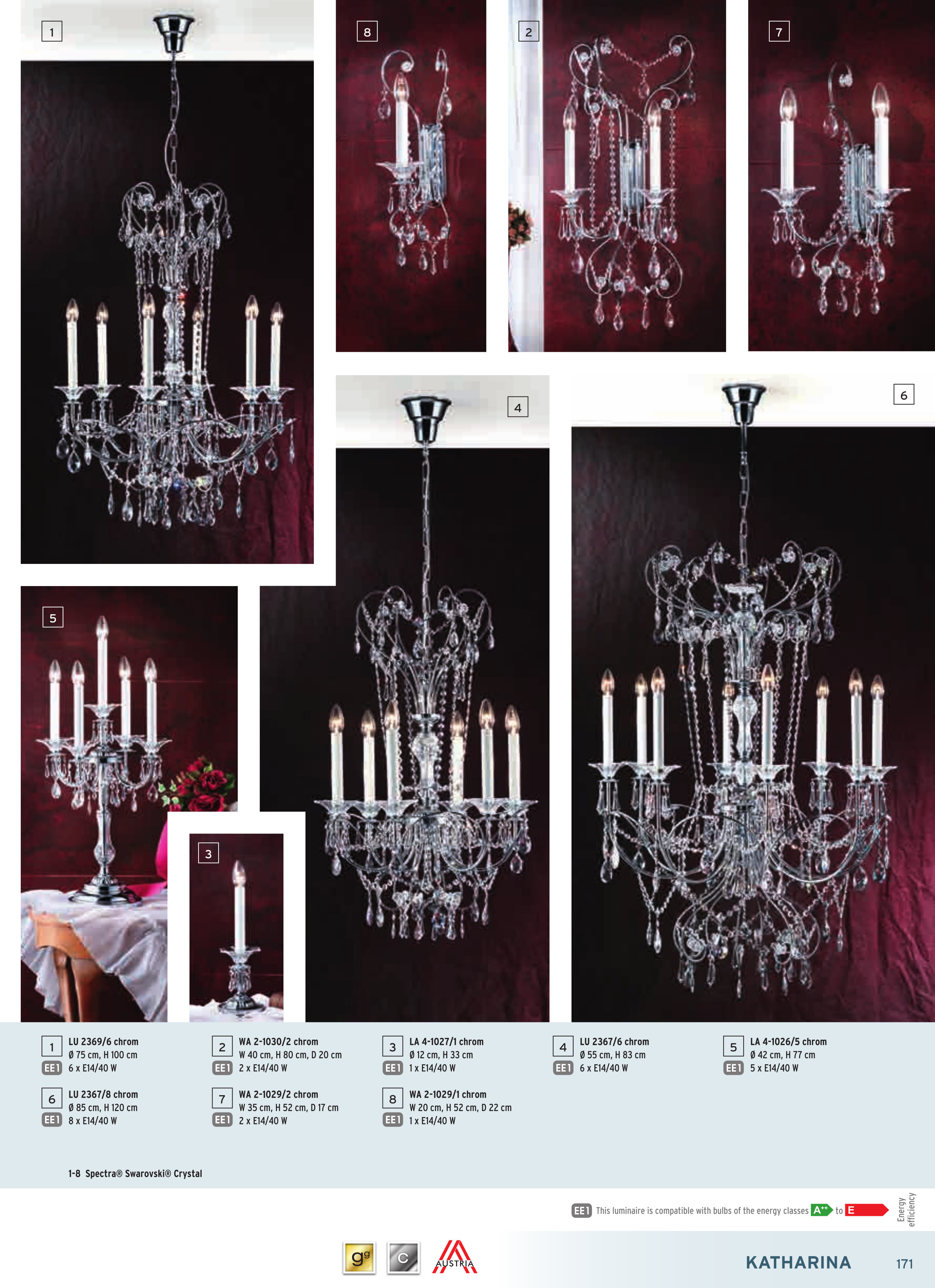 За стила и естетиката на интериора допринасят, както цялостната визия и дизайн на осветителното тяло, така и вложените от производителя в изработката висококачествени материали, като хромиран месинг, кристали SPECTRA® Swarovski® Crystal с форма на перли, капки, бадеми, розетки.