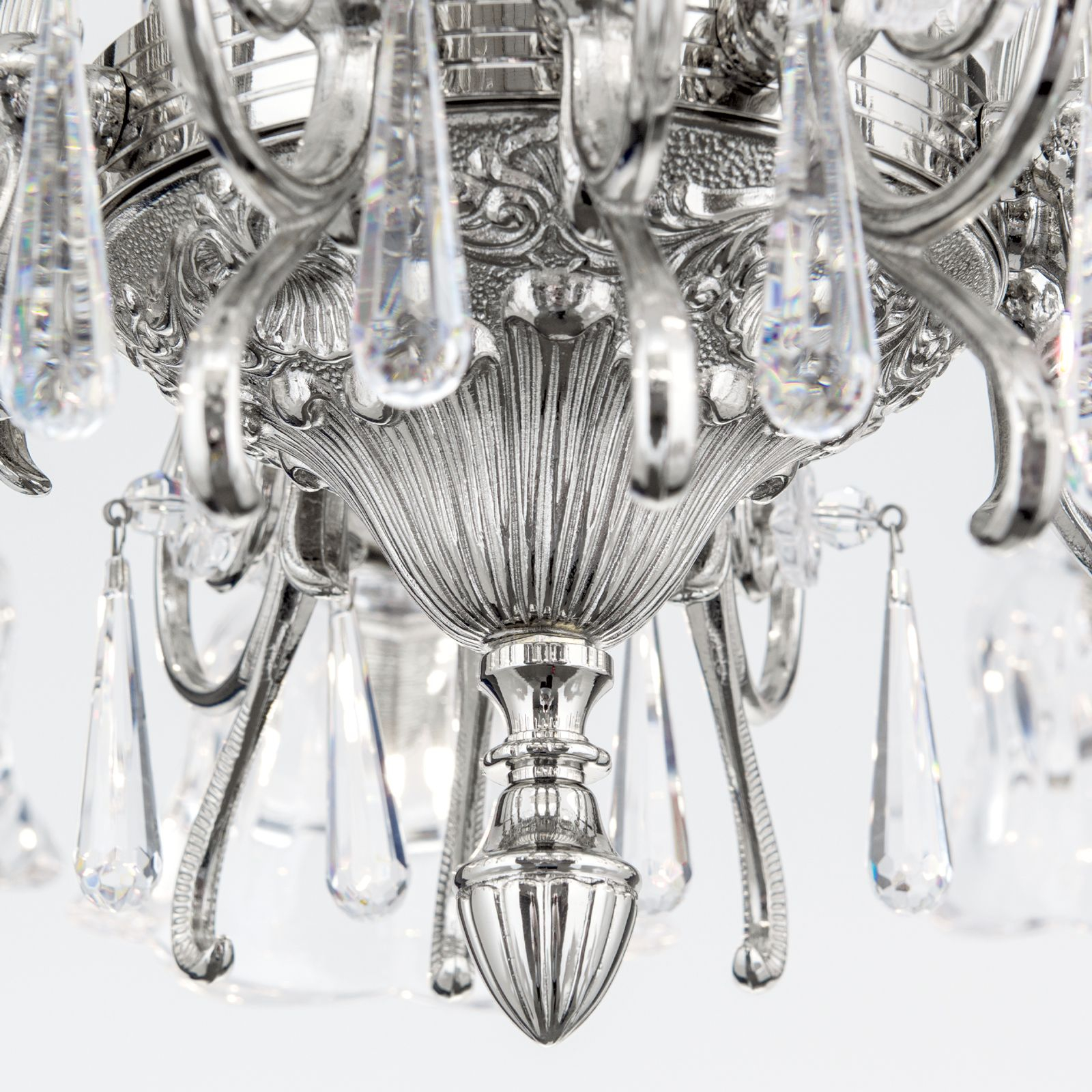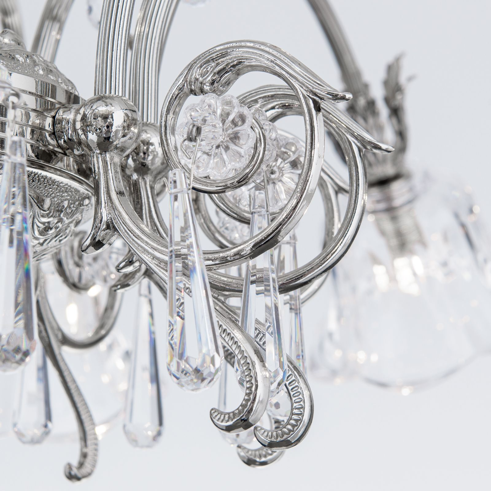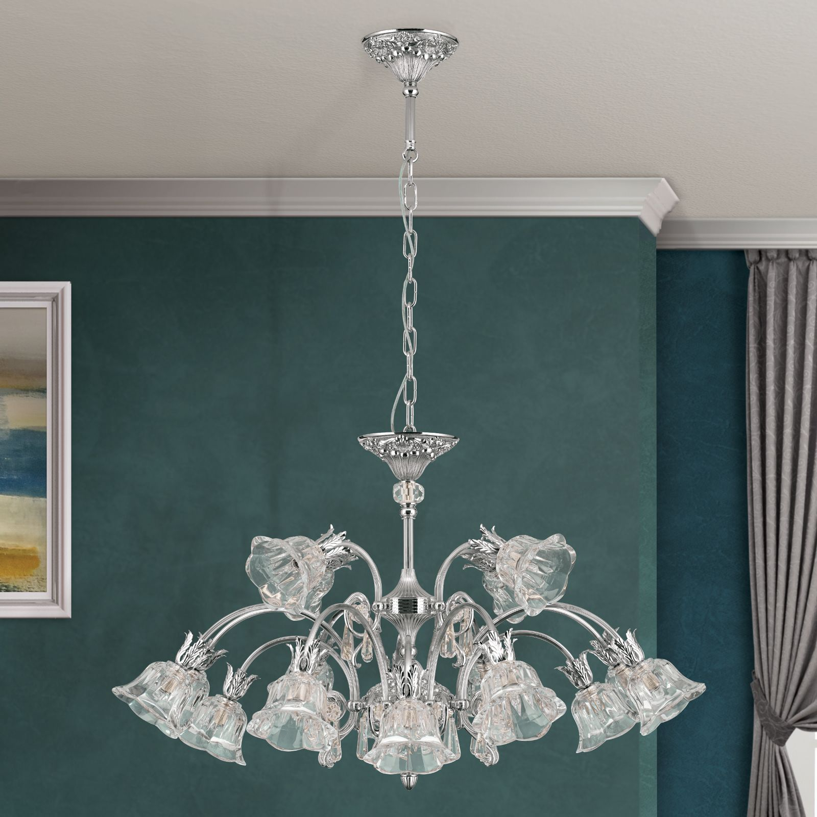 За стила и естетиката на интериора допринасят, както цялостната визия и дизайн на осветителното тяло, така и вложените от производителя в изработката висококачествени материали, като масивен месинг с покритие от антично сребро, изцяло шлифовано кристално стъкло 1A.