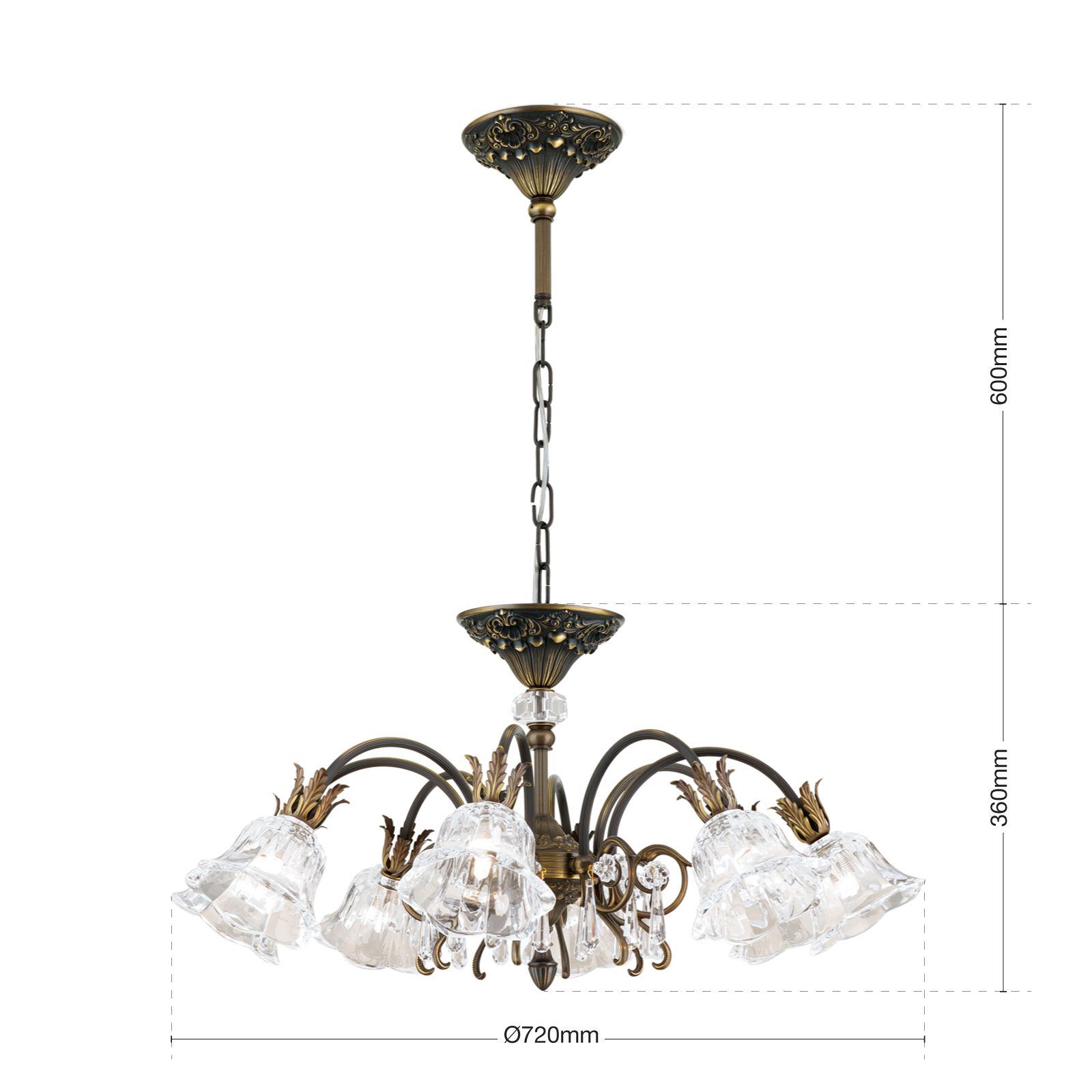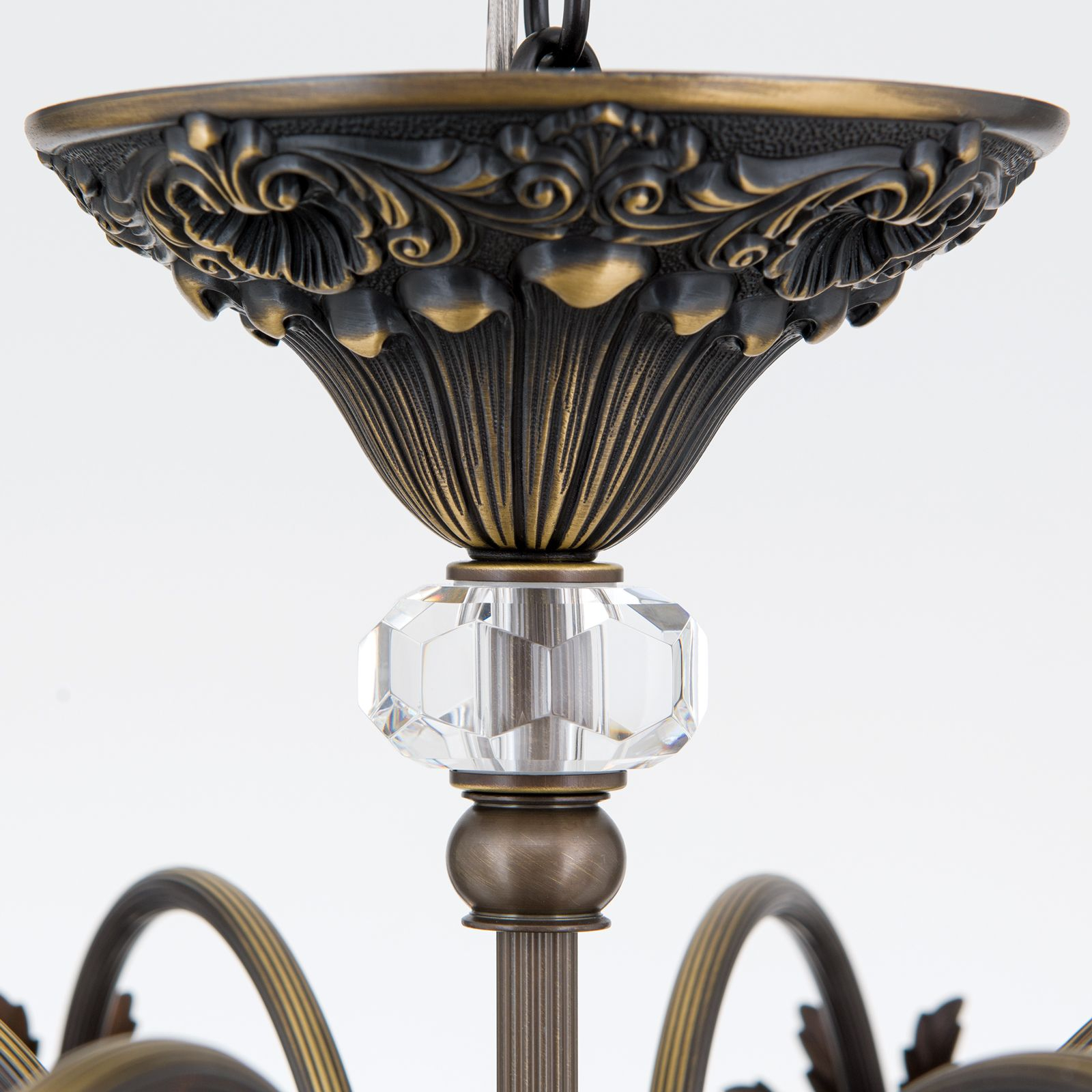 масивен месинг с ръчно нанесено покритие в цвят стара патина, кристали и шлифовано кристално стъкло А1