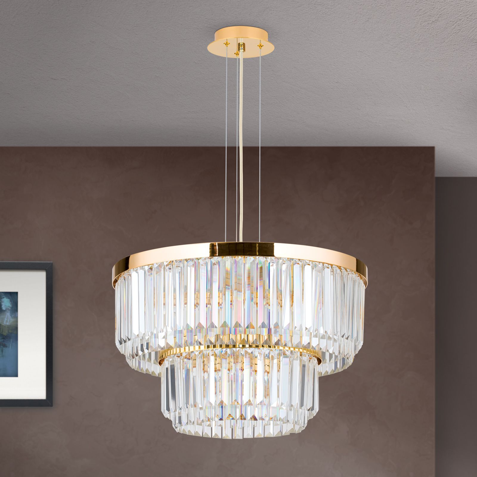 Лед полилей LU 2415/55 gold (LED80W/6400lm/3000K) ще осигури комфорт и естетика във всяко помещение, в което се постави. Цялостната визия и дизайн на led лампата и вложените в изработката й материали, като стомана с цвят злато, кристални призми К9, ще допринесат за един неповторим стил. Благодарение на дългогодишния опит в производството на лед осветление, качествените материали и строгия контрол на качеството на изработка на производителя Orion (Австрия), LU 2415/55 gold (LED80W/6400lm/3000K) е на високо европейско ниво.