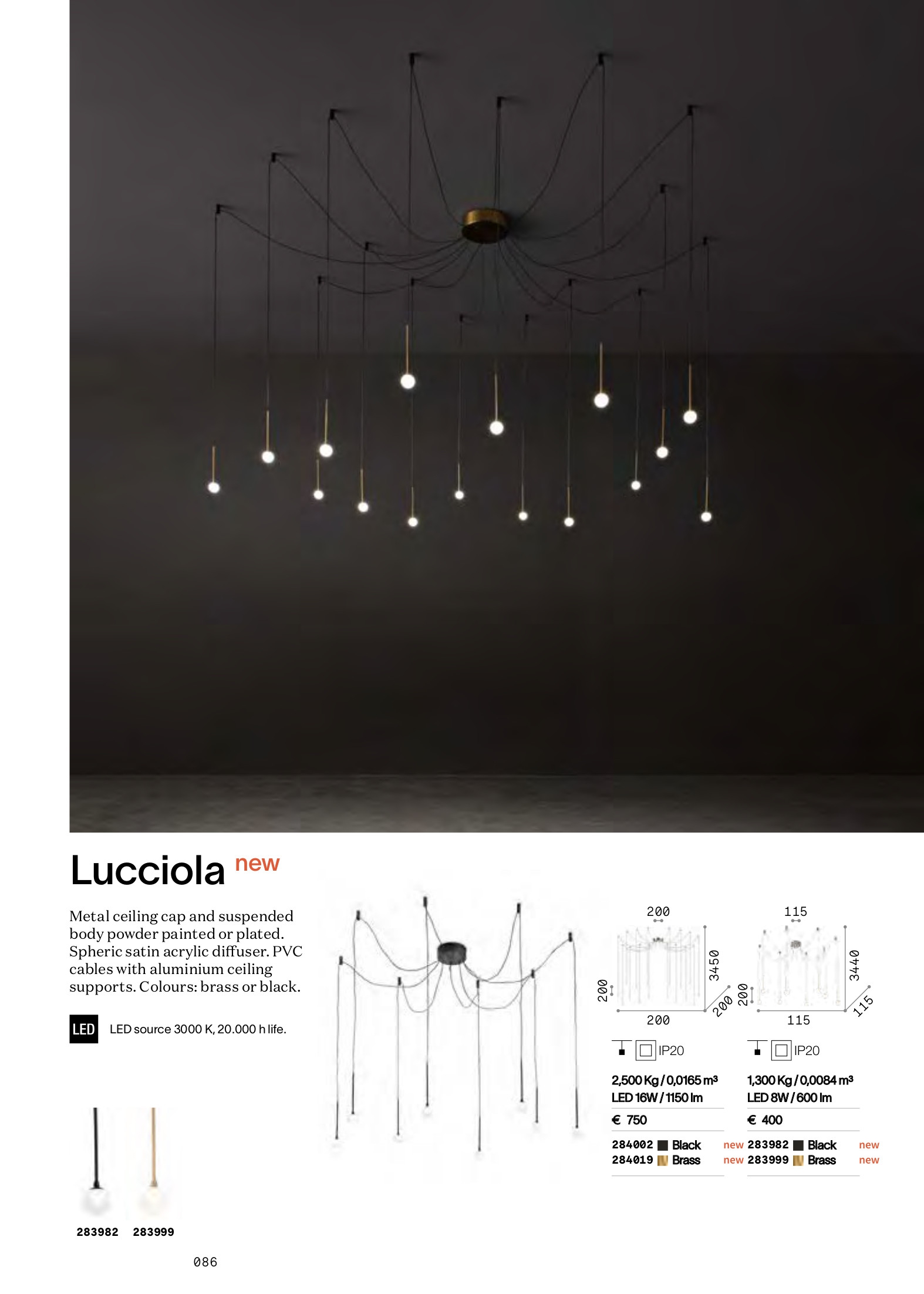 Осветителното тяло LUCCIOLA SP16 OTTONE ще осигури комфорт и естетика във всяко помещение, в което се постави. Цялостната визия и дизайн на лампата и вложените в изработката й материали, като таванна розетка от метал с месингово покритие, нанесено по прахова технология, осветителни тела с месингов финиш, сферични дифузьори от сатениран акрил, PVC кабели в черно, алуминиеви таванни носачи в черен цвят, ще допринесат за един неповторим стил. Благодарение на дългогодишния опит, качествените материали и строгия контрол на качеството на изработка на производителя Ideal-Lux (Италия), LUCCIOLA SP16 OTTONE е на високо европейско ниво.