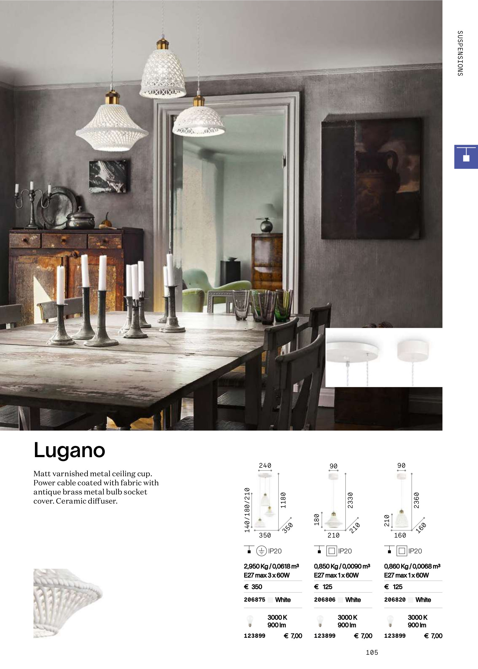 Осветителното тяло LUGANO SP1 D16 ще осигури комфорт и естетика във всяко помещение, в което се постави. Цялостната визия и дизайн на лампата и вложените в изработката й материали, като порцелан в бяло, метал в цвят античен месинг, захранващ кабел с бяла текстилна оплетка, ще допринесат за един неповторим стил. Благодарение на дългогодишния опит, качествените материали и строгия контрол на качеството на изработка на производителя Ideal-Lux (Италия), LUGANO SP1 D16 е на високо европейско ниво.