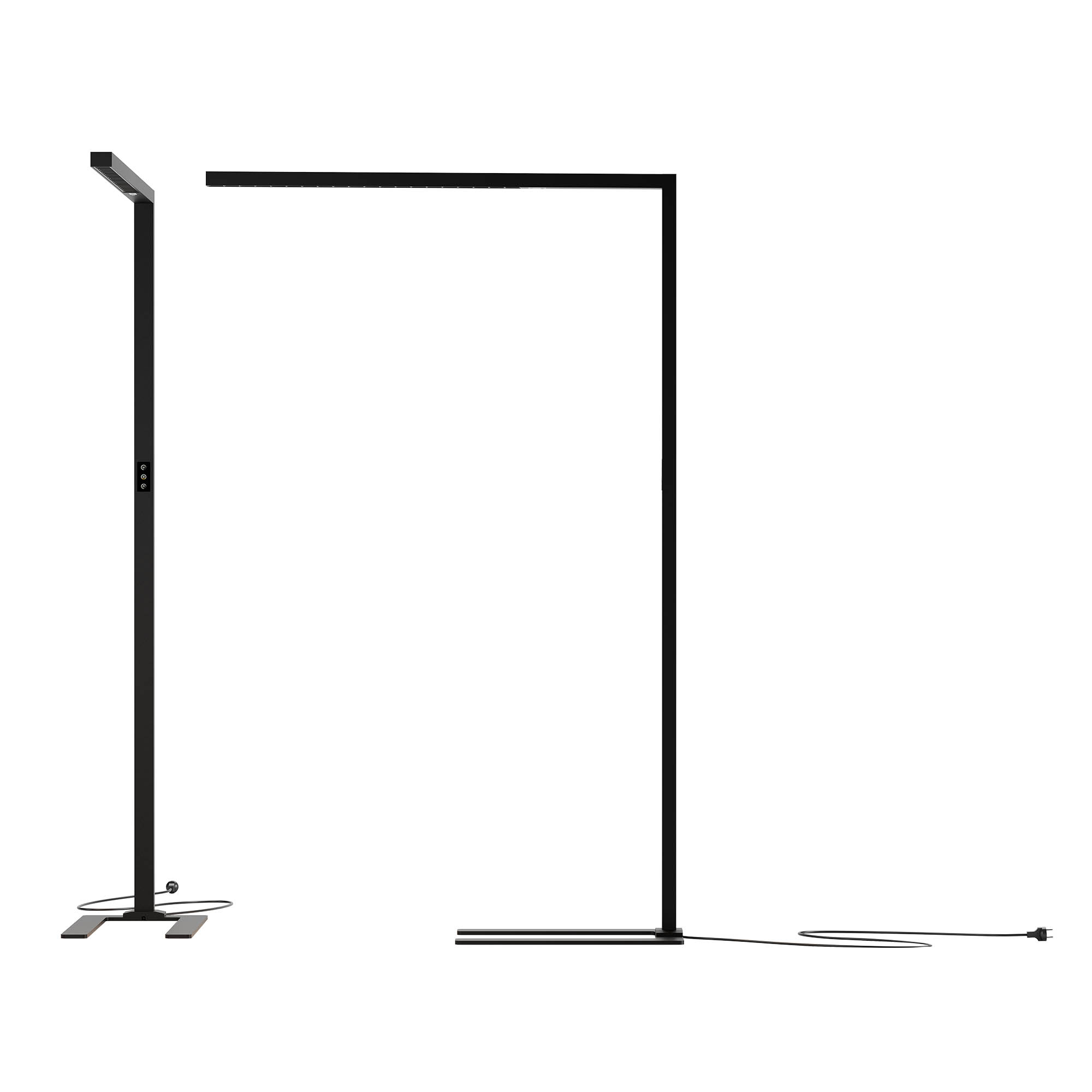 алуминиев профил, основа от стомана в пясъчно черен цвят чрез пясъкоструйно покритие, дифузер от прозрачен поликарбонат за индиректна светлина и черен, тип пчелна пита за директна светлина, ССТ 3000-6000K, димируема и със сензор за движение и осветеност
