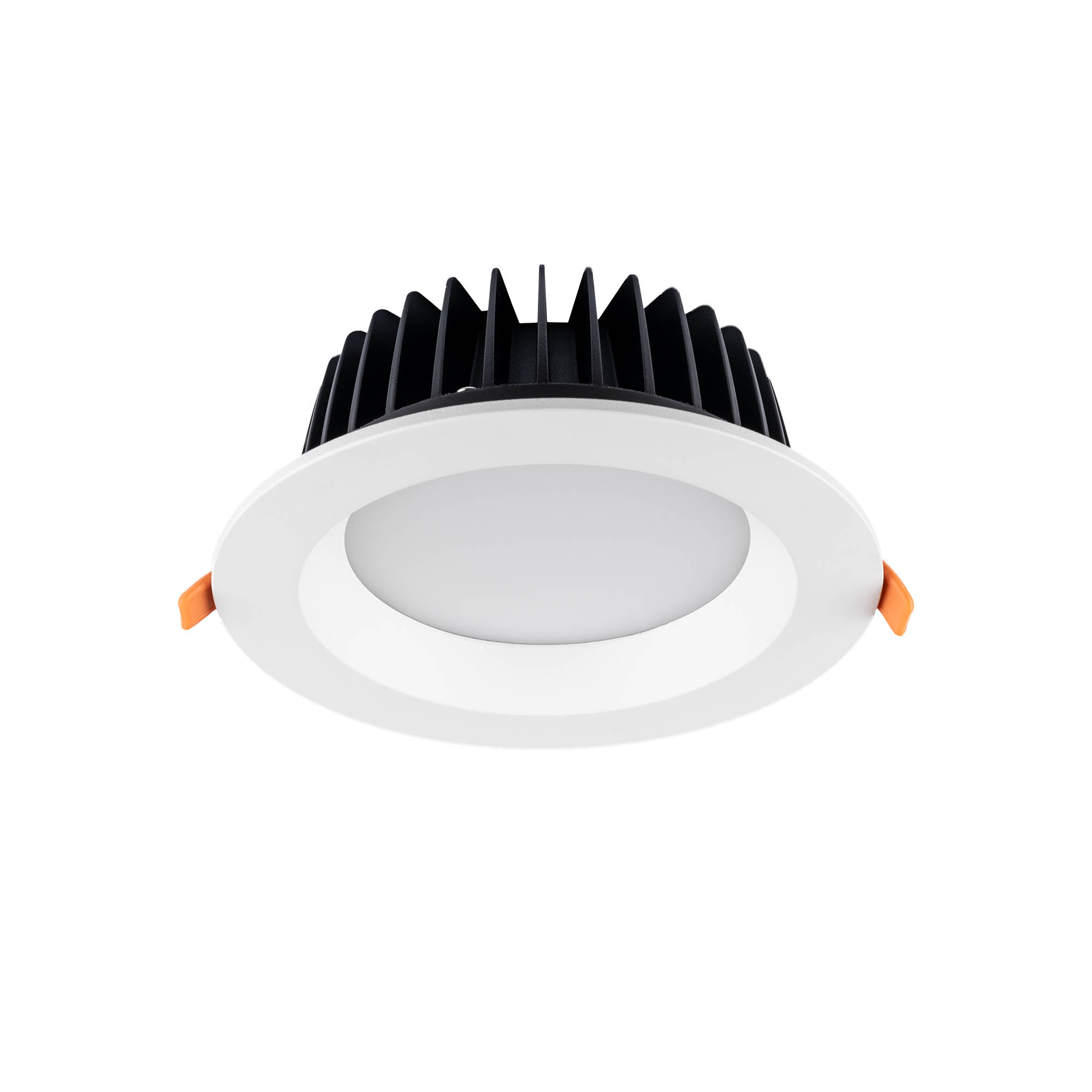 рамка от отлят алуминий, с нанесено пясъкоструйно покритие в бял цвят, корпус от алуминий в черен цвят, който служи и за радиатор, рефлектор от светлоотразителен полимер, дифузер от опалово бял РММА